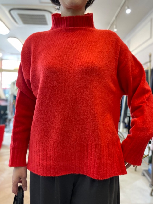 軽く、柔らかく、暖かい ラクーンウールニット ハイネック レッド ラベンダー