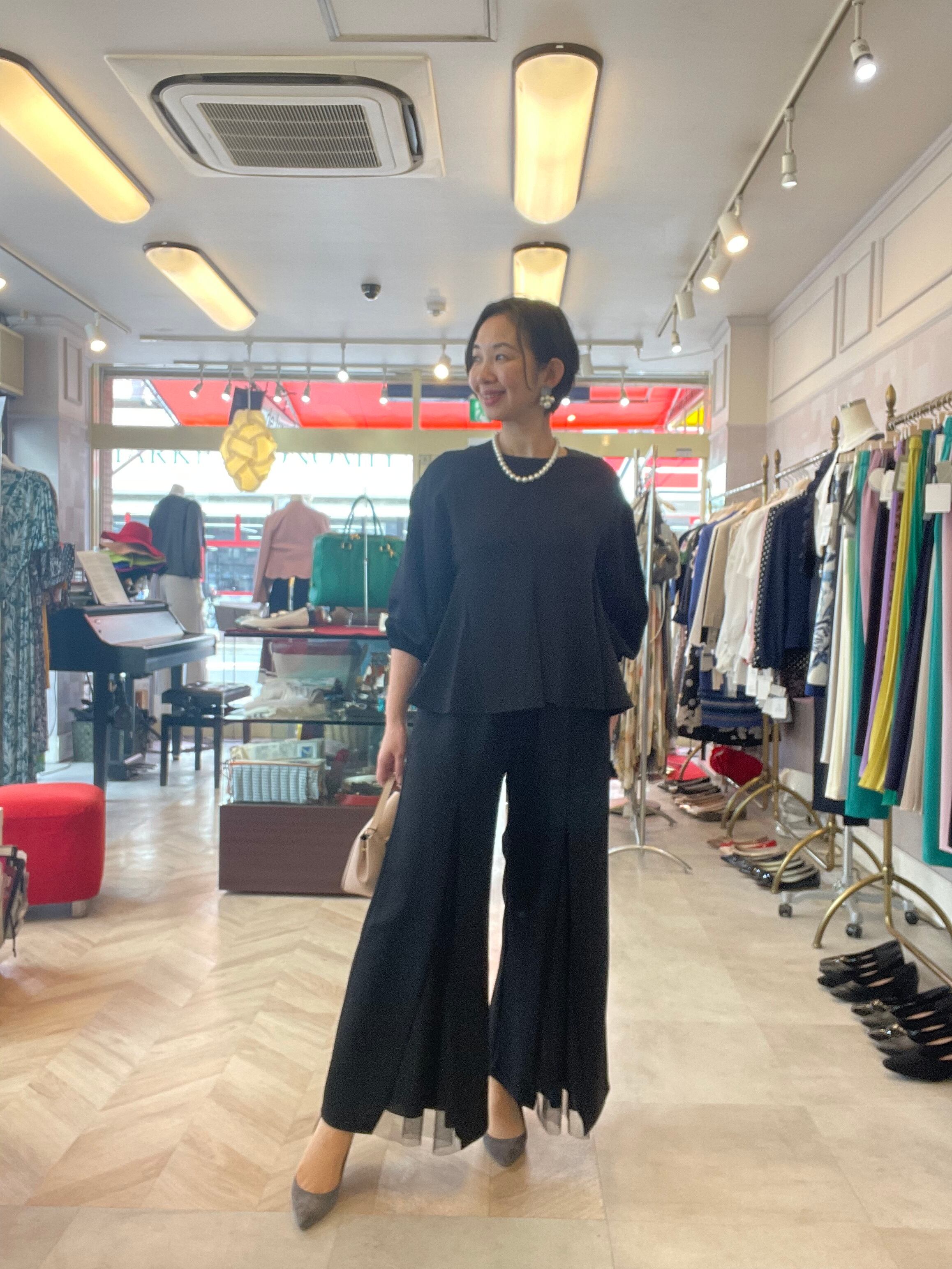 動くたびにエレガントに揺れる、チュール使いが美しいワイドパンツ