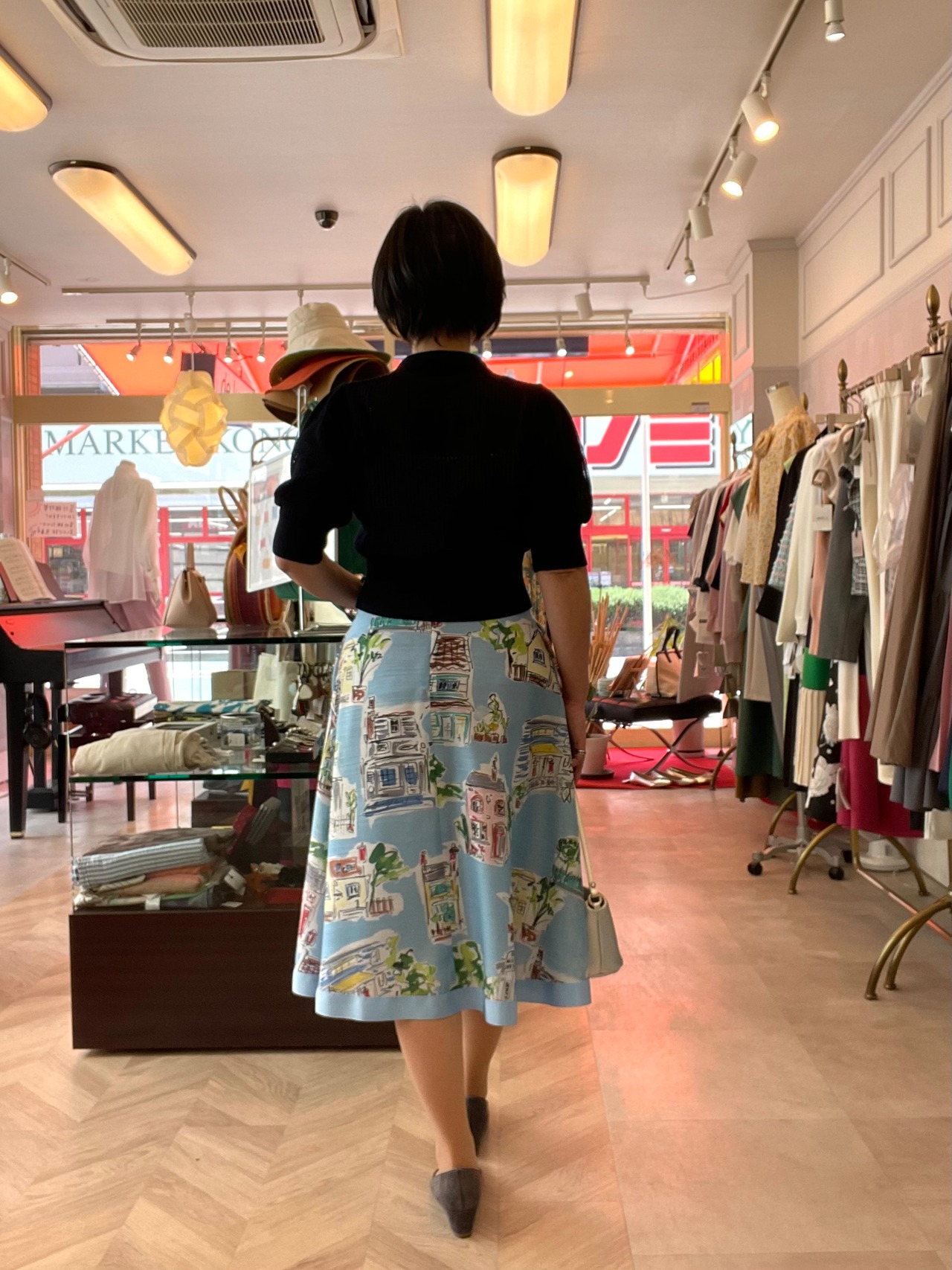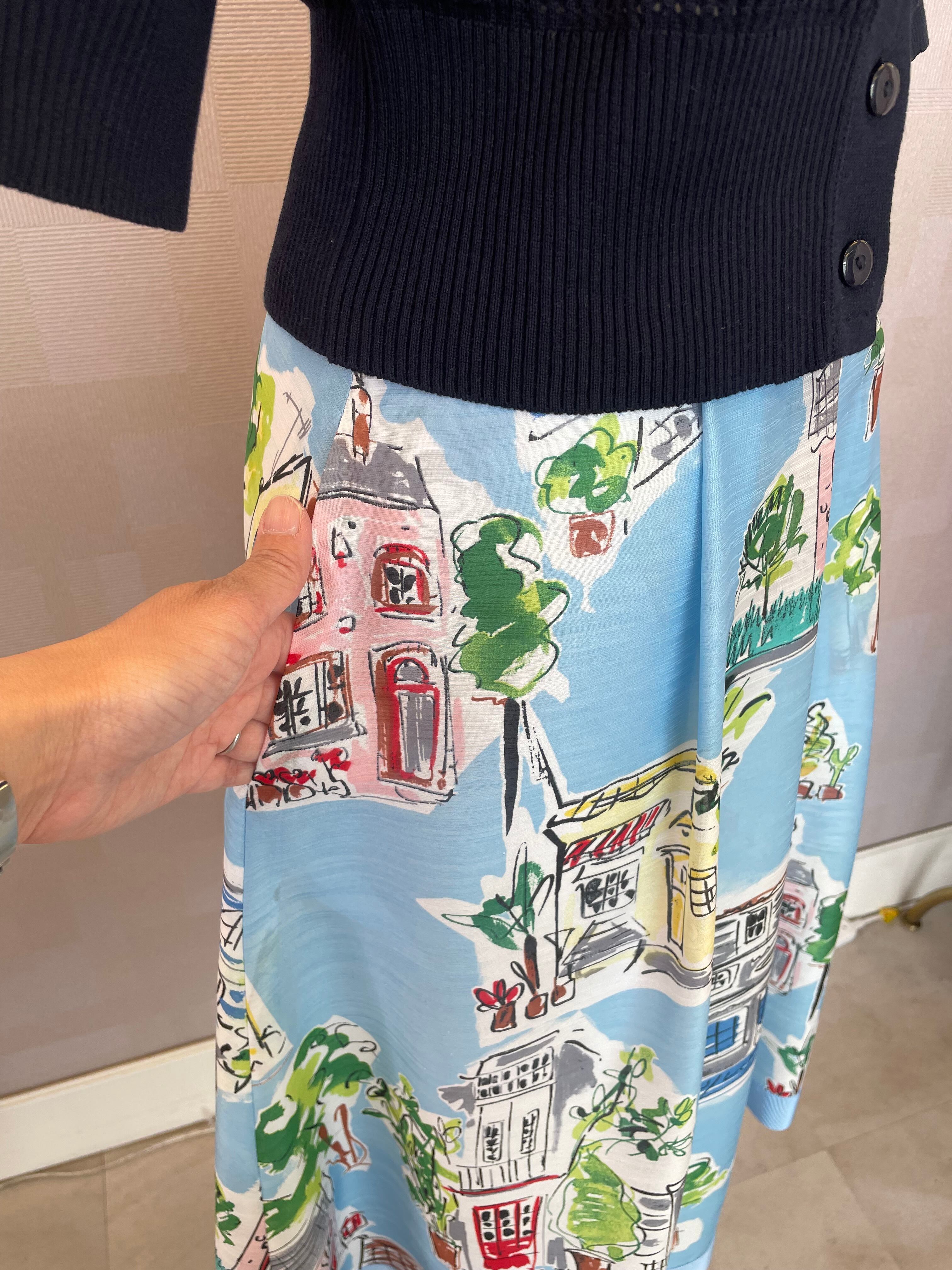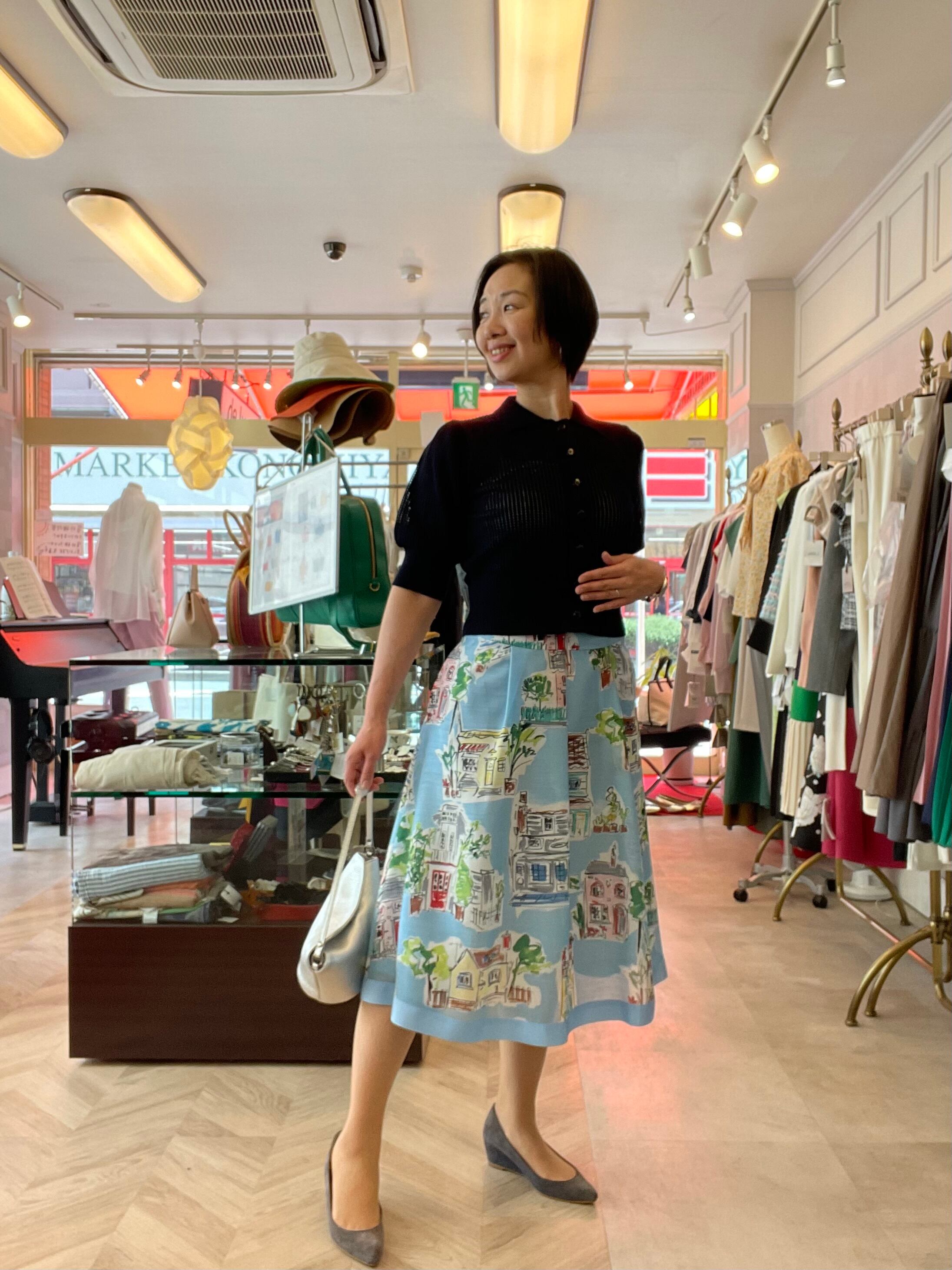 家や街並みがプリントされたスカートです