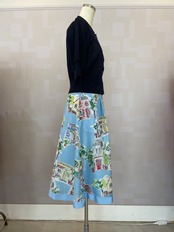 絵画風プリントスカート ブルー 膝下丈