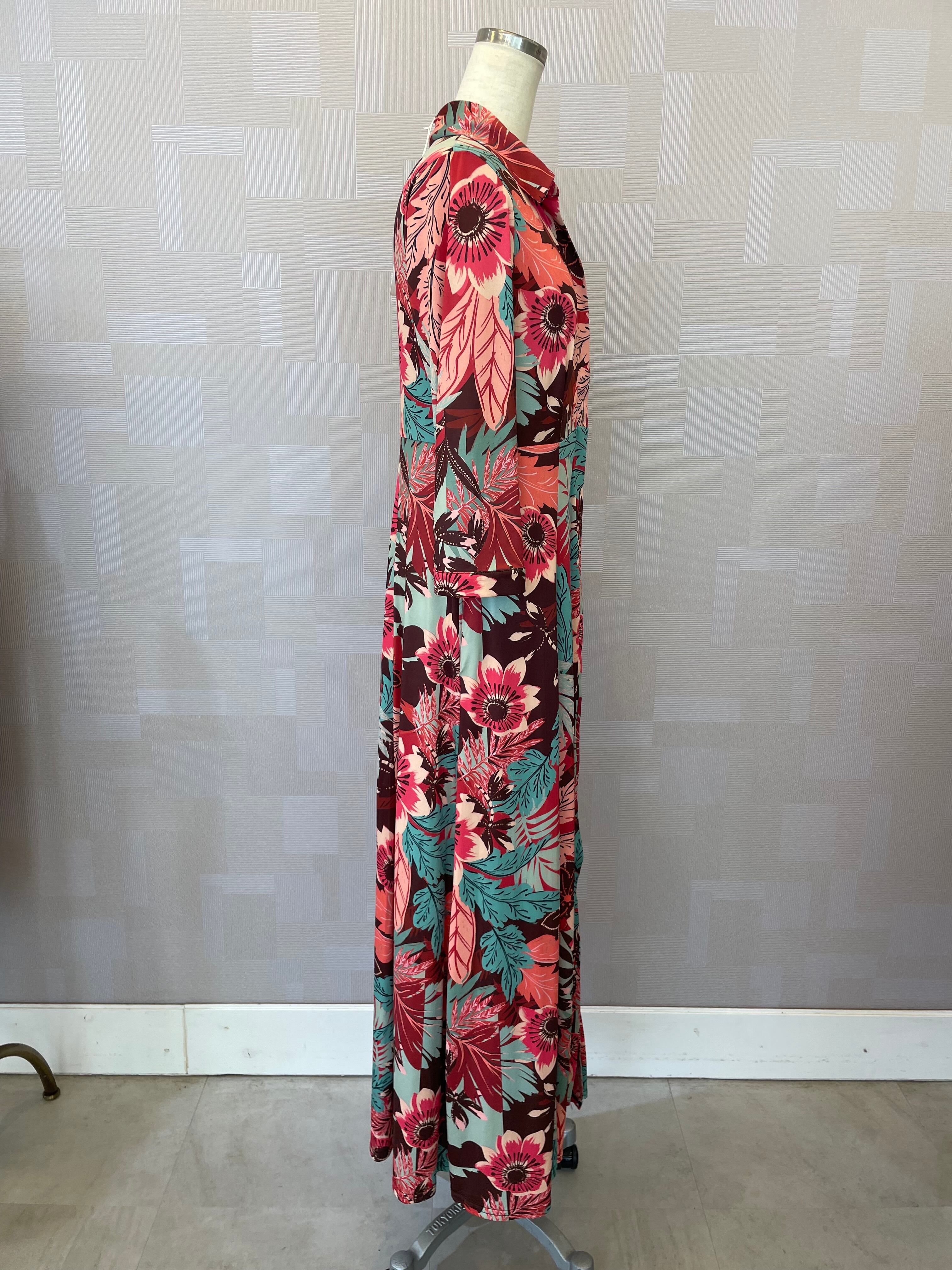鮮やかな花柄ワンピース フランス製 ピンク系 マキシ丈 パーティ お出かけ