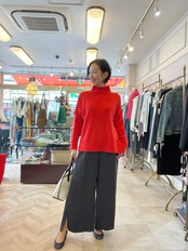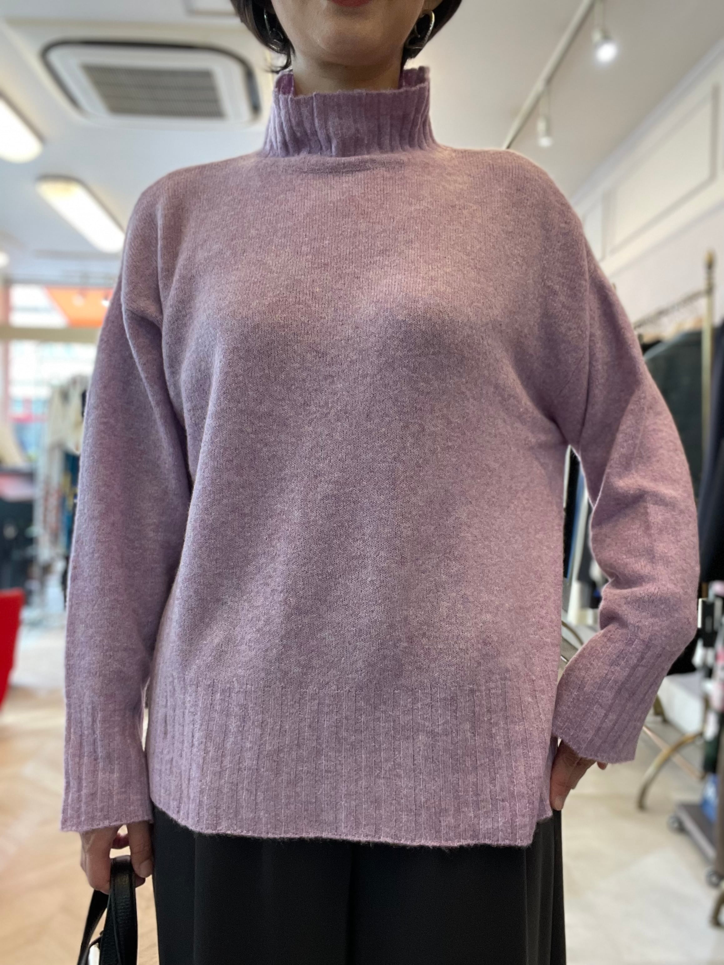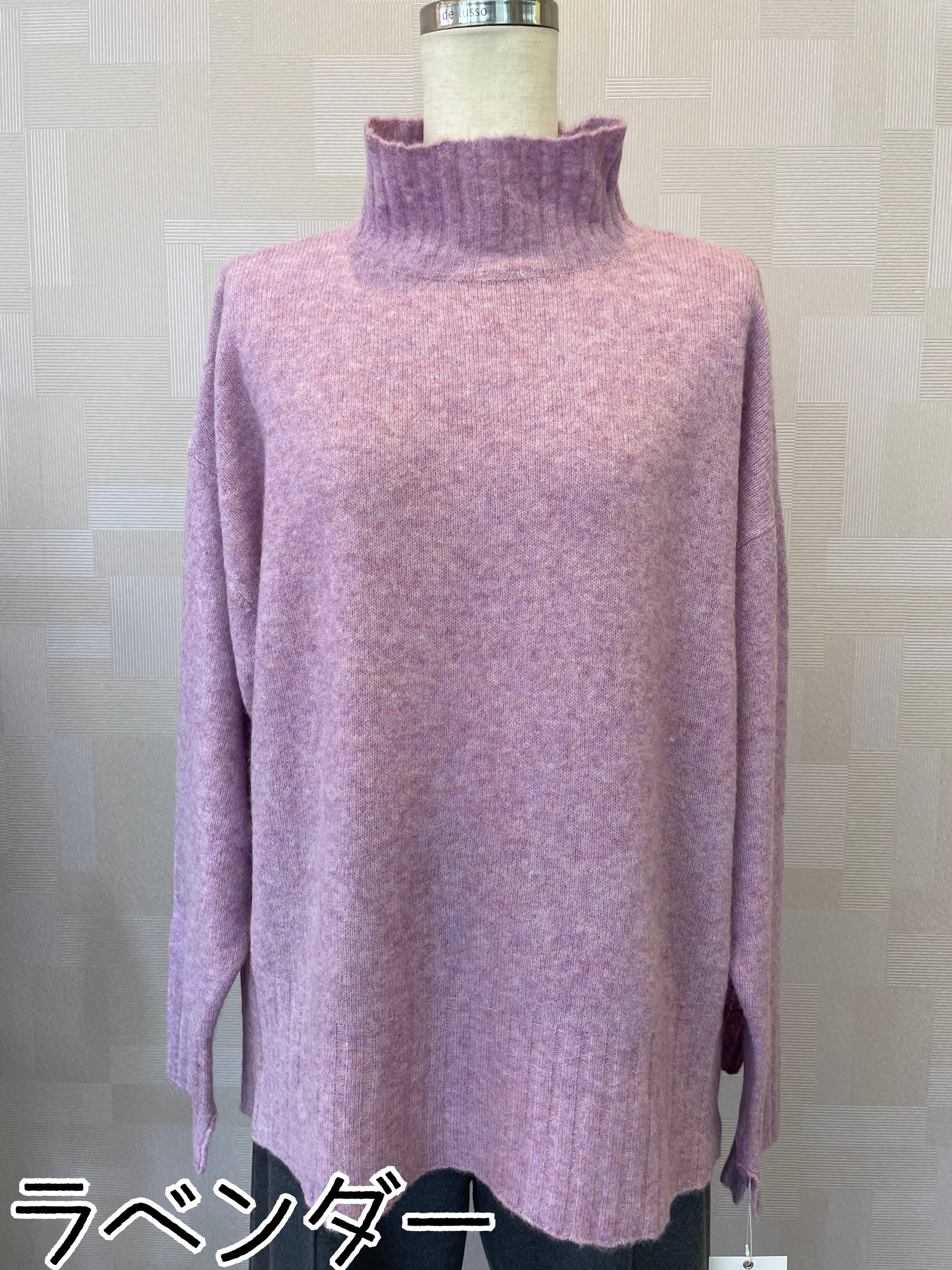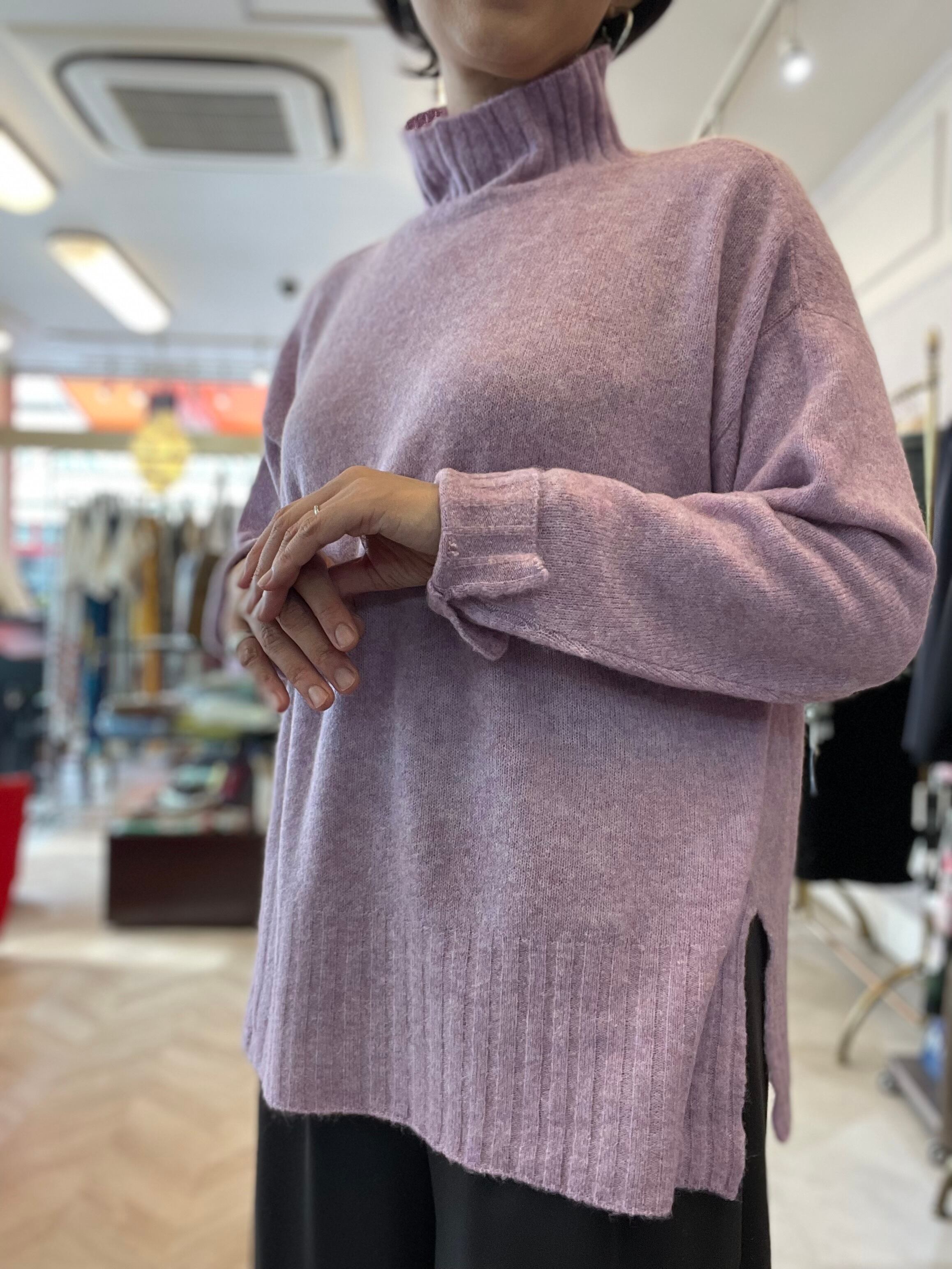 シンプルなハイネックに袖口と裾にスリットデザインがポイント