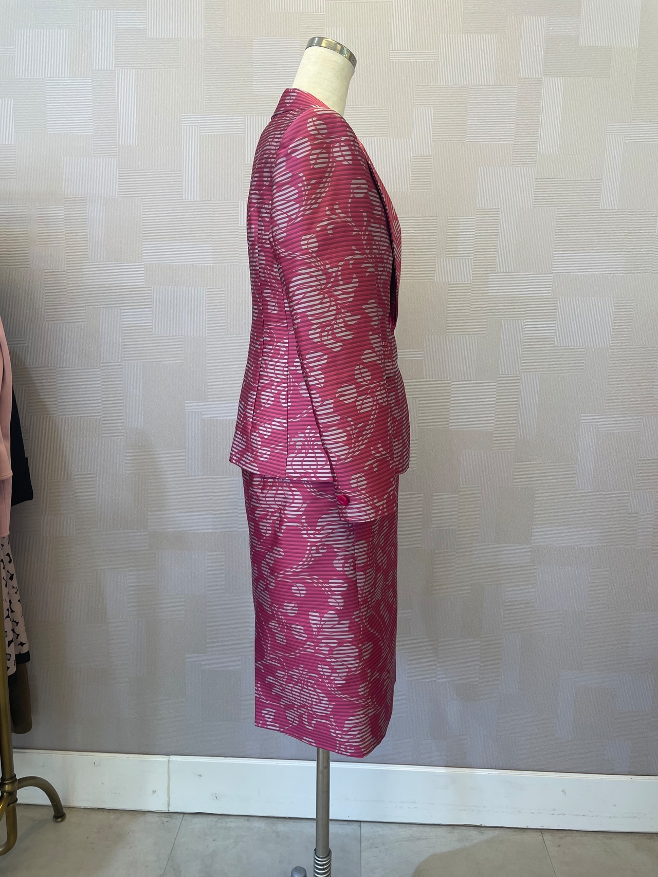 期間限定商品 光沢ピンク 花柄ワンピース、ジャケット セットアップ サイズ40