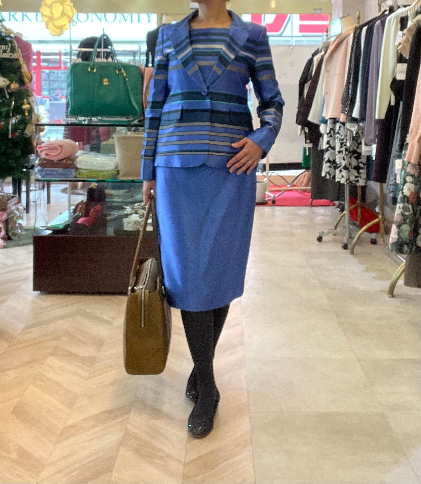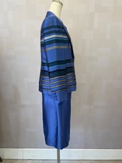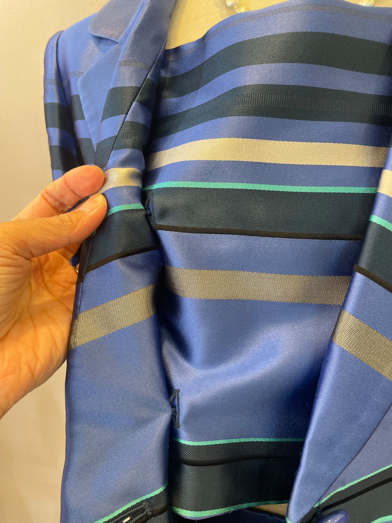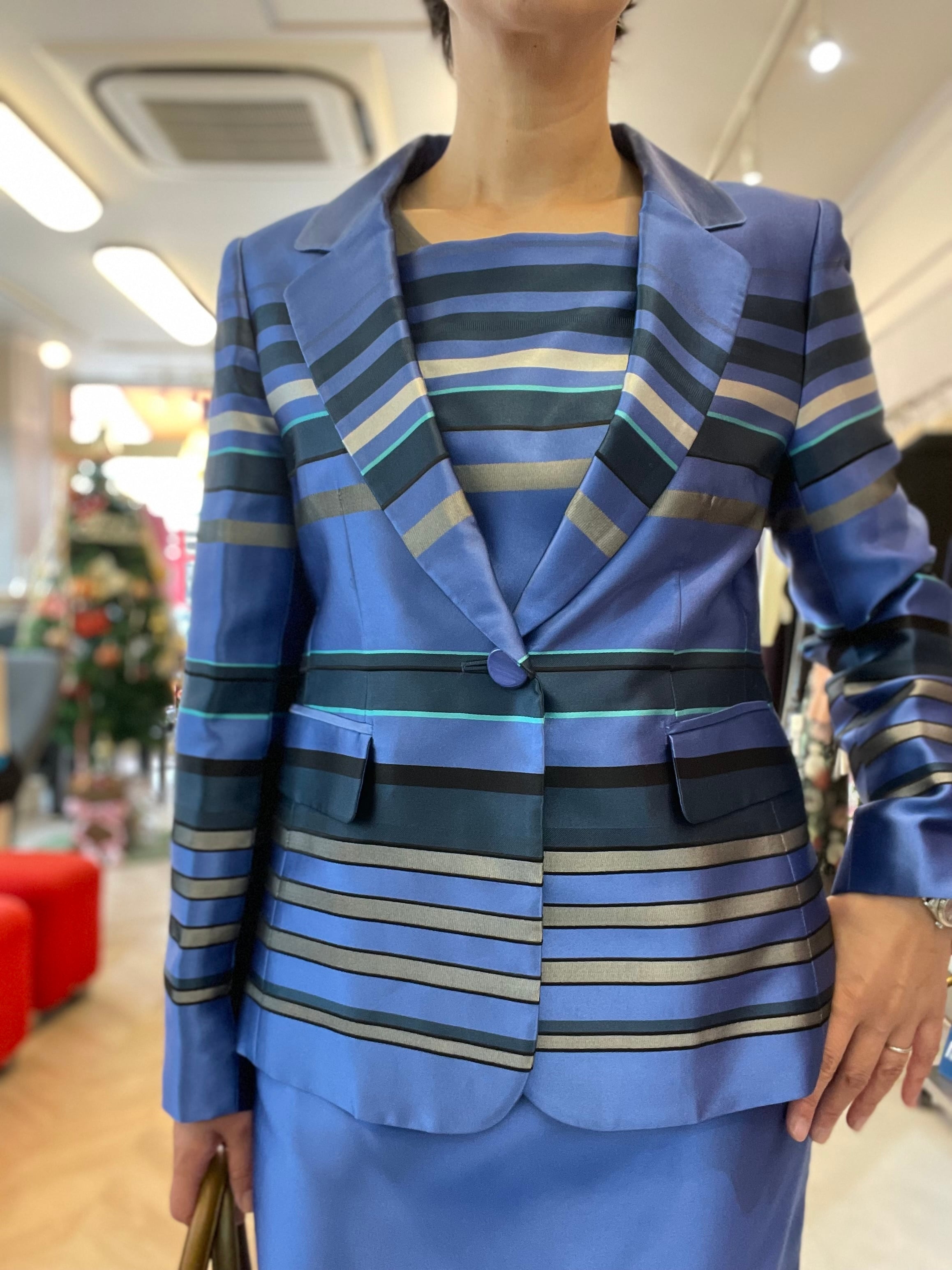 期間限定商品 光沢シルク素材 ブルー配色スーツ サイズ40