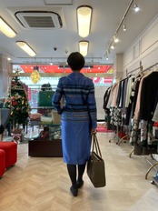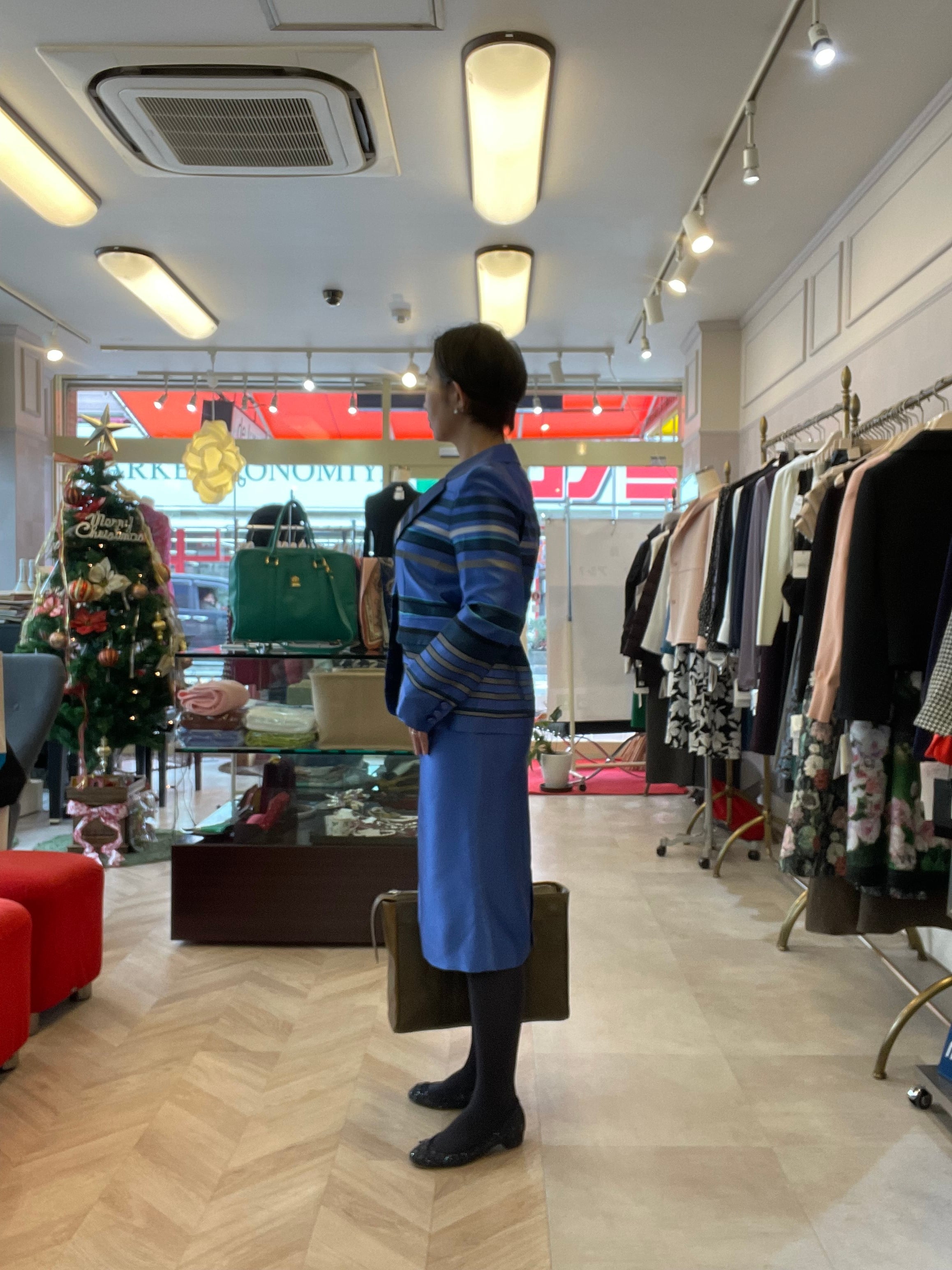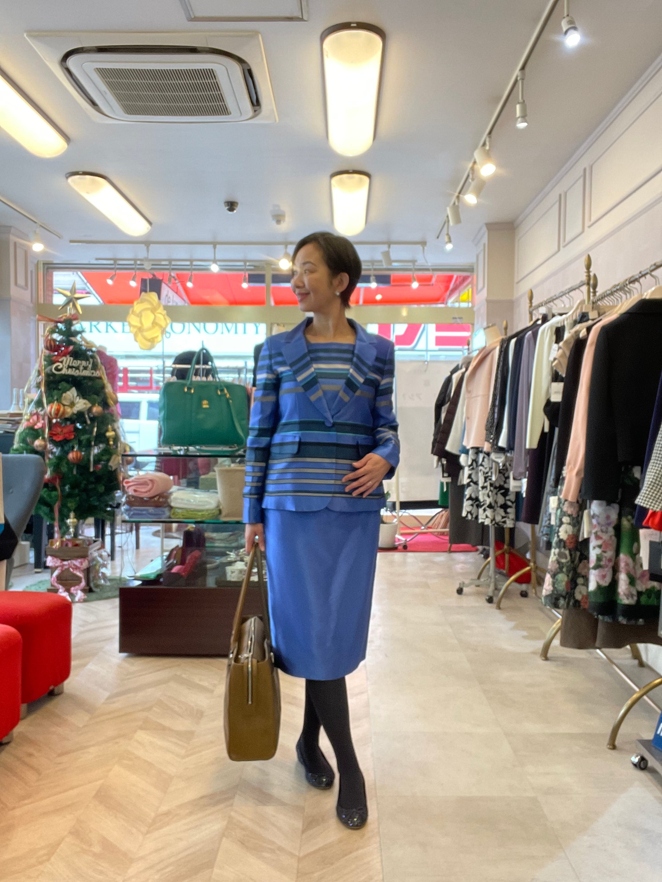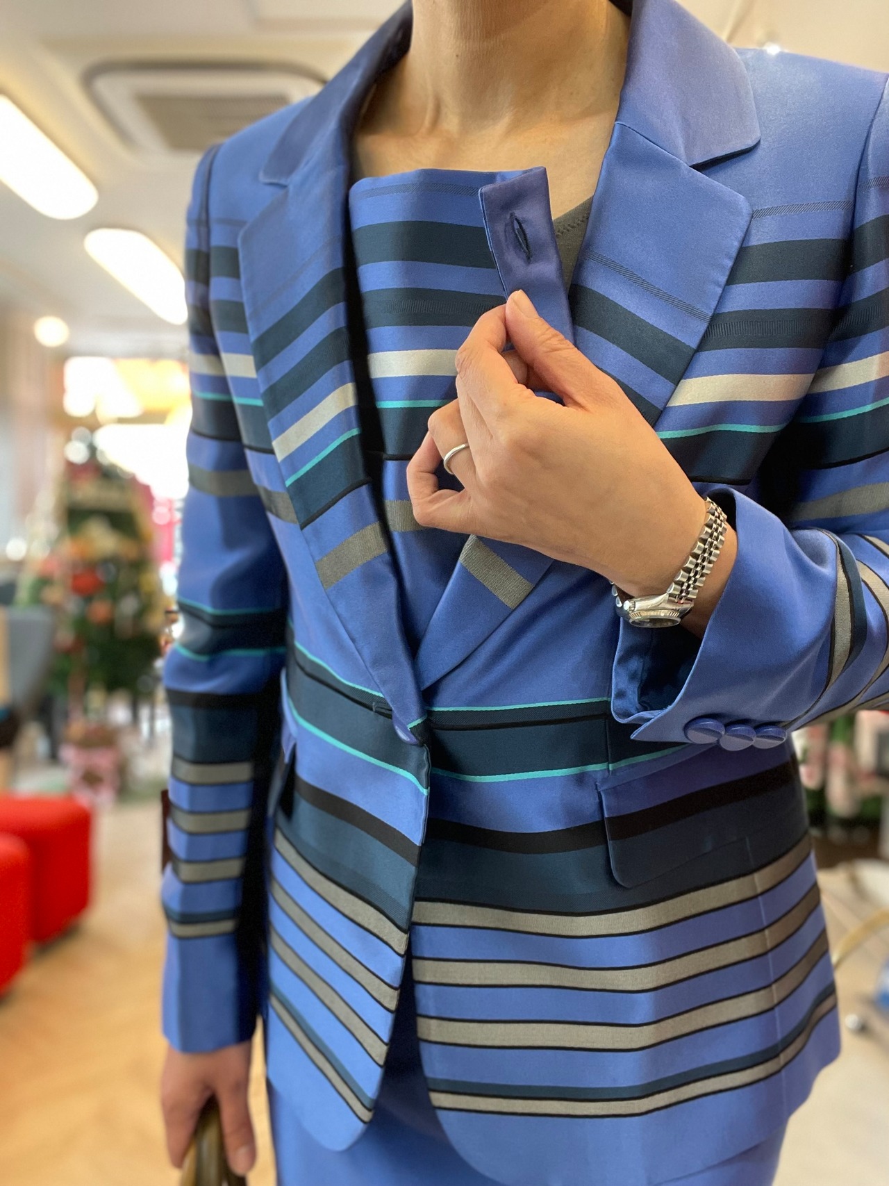 期間限定商品 光沢シルク素材 ブルー配色スーツ サイズ40