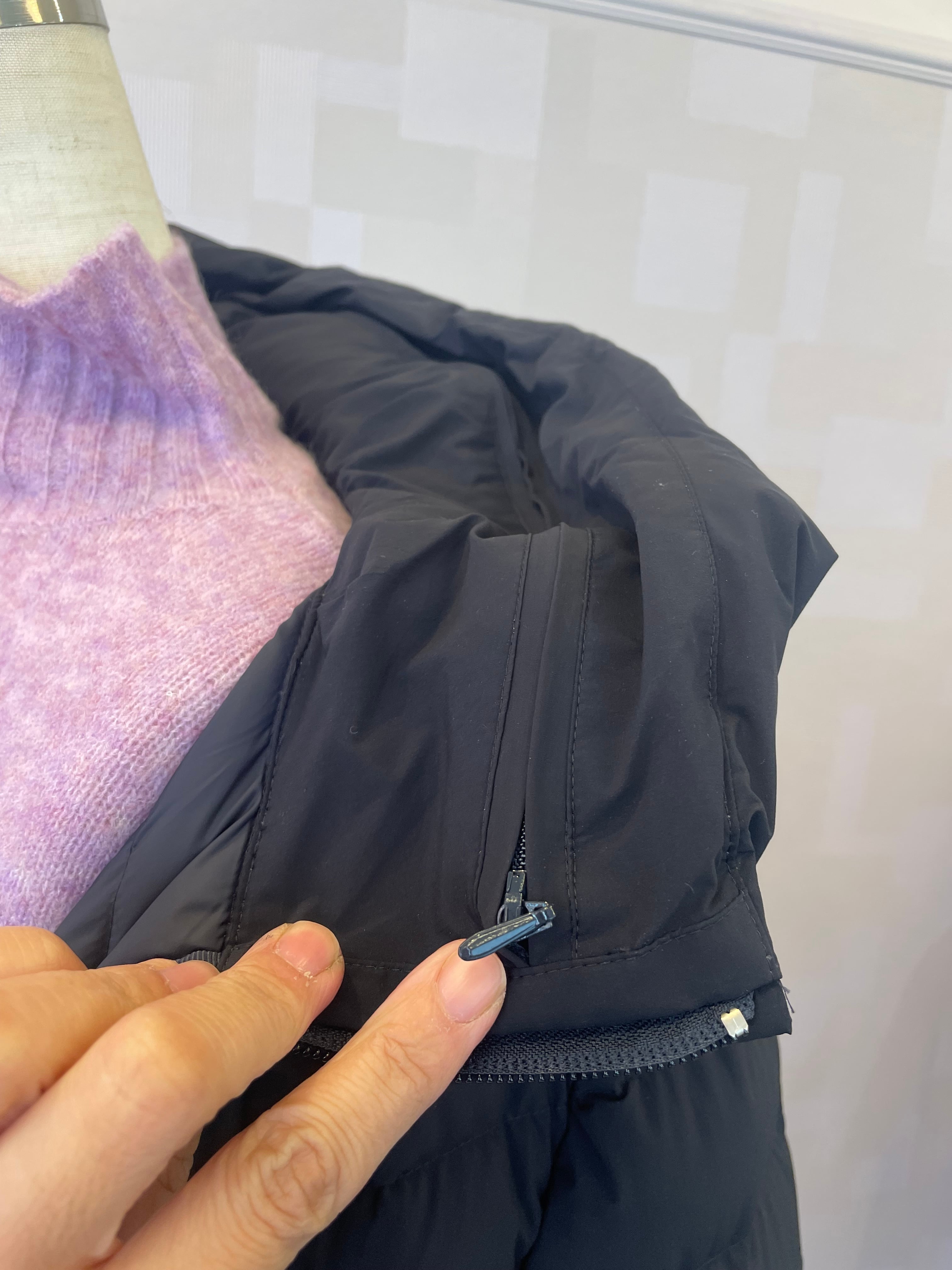 大きめ襟は後ろのスナップと内側ファスナーでフードに!!