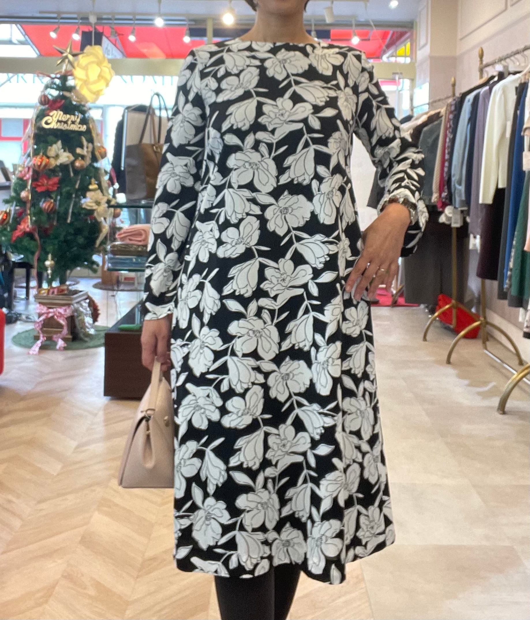 長袖ワンピースは羽織りなしで1枚で着てもきれいなので重宝します