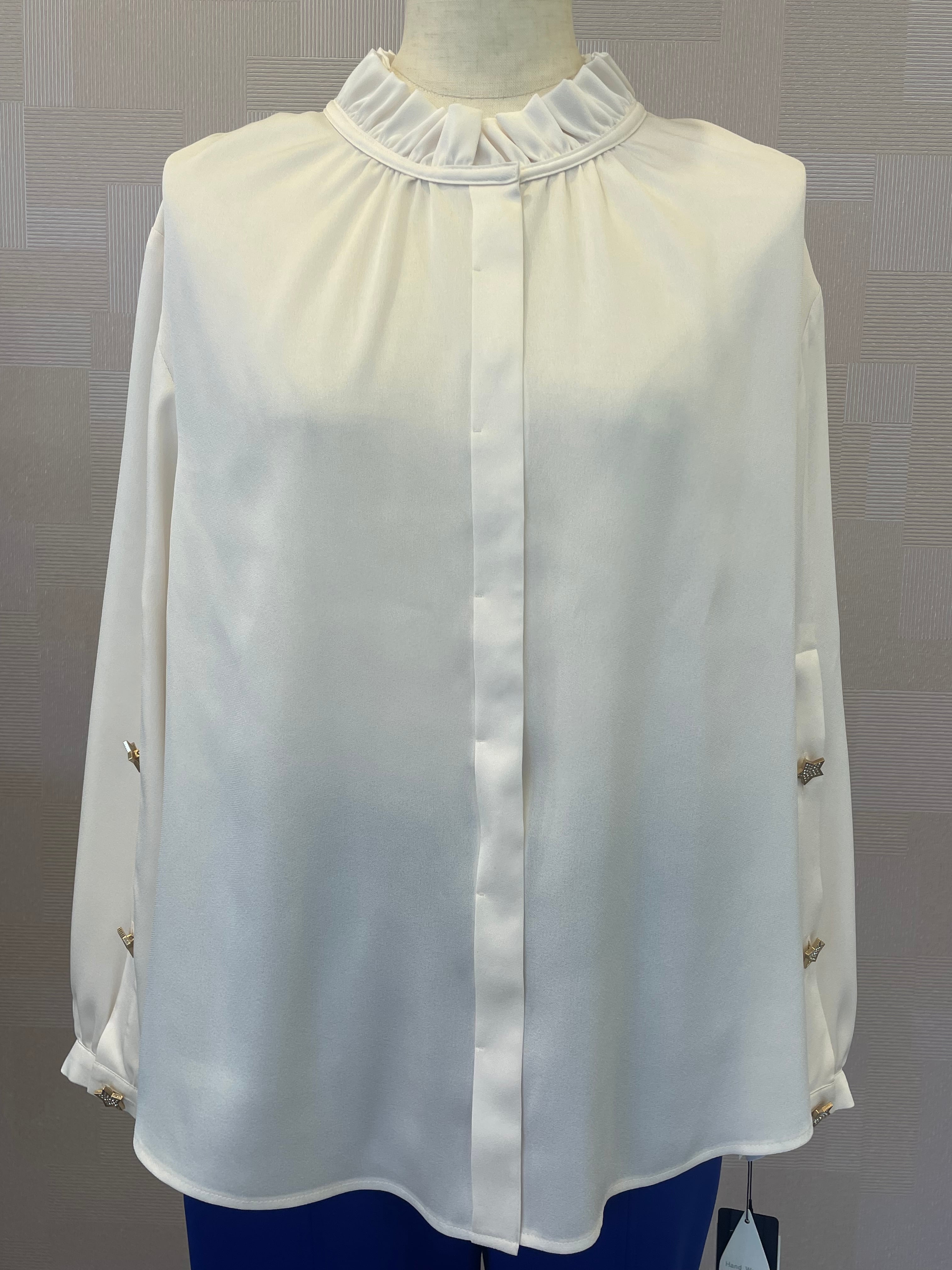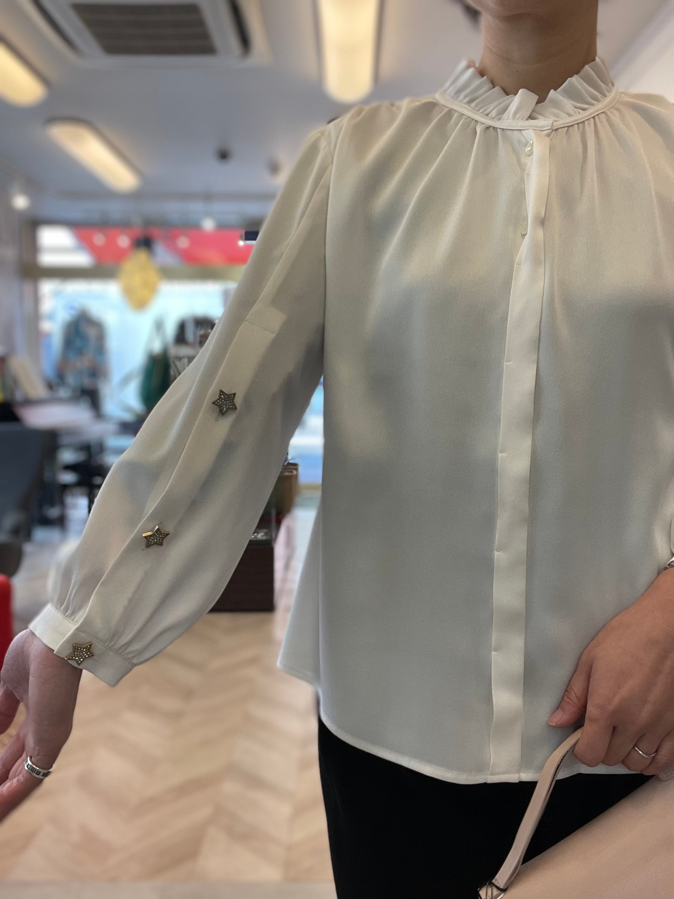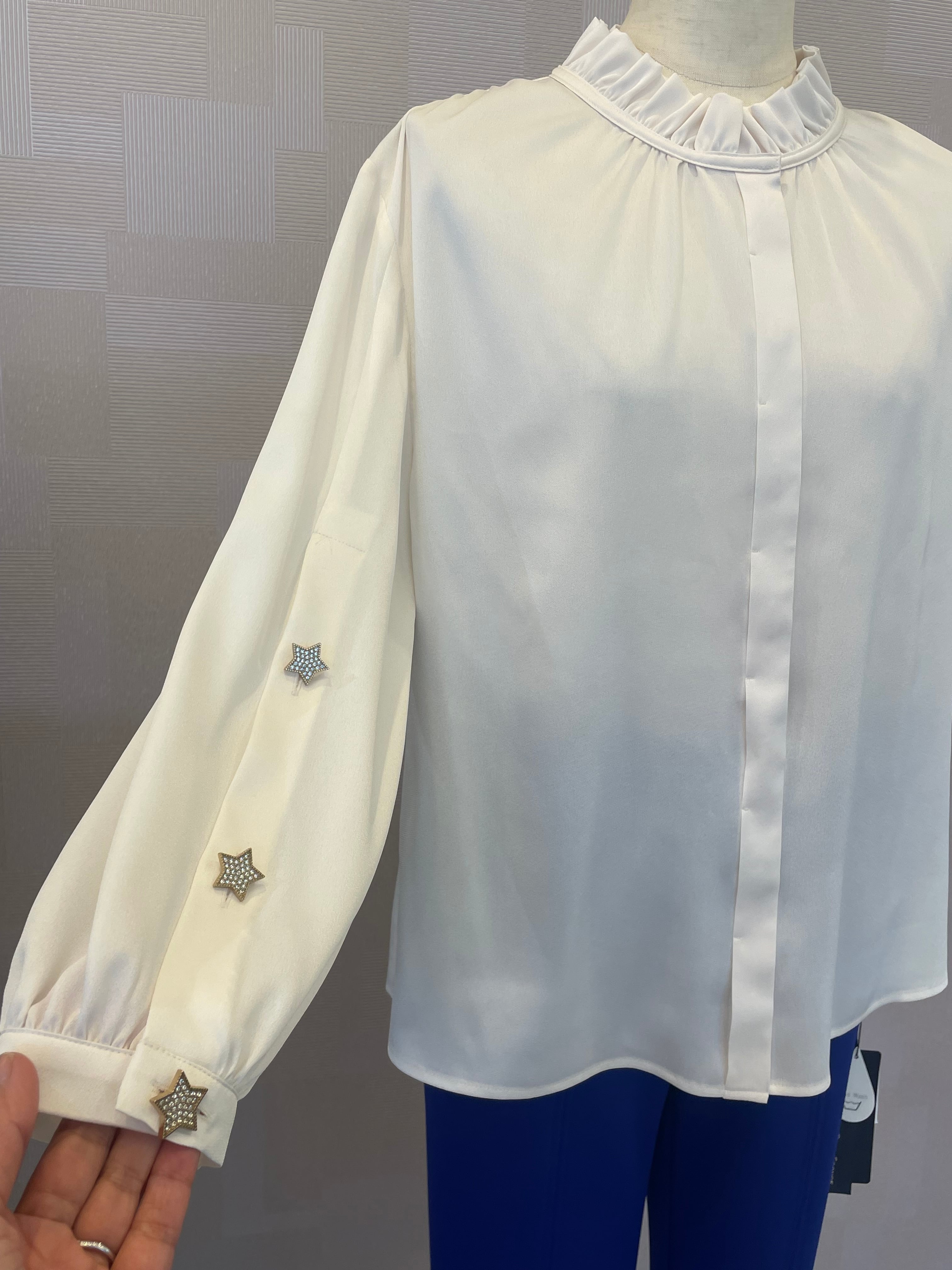 袖の星ボタンできれいめになりすぎない絶妙バランス