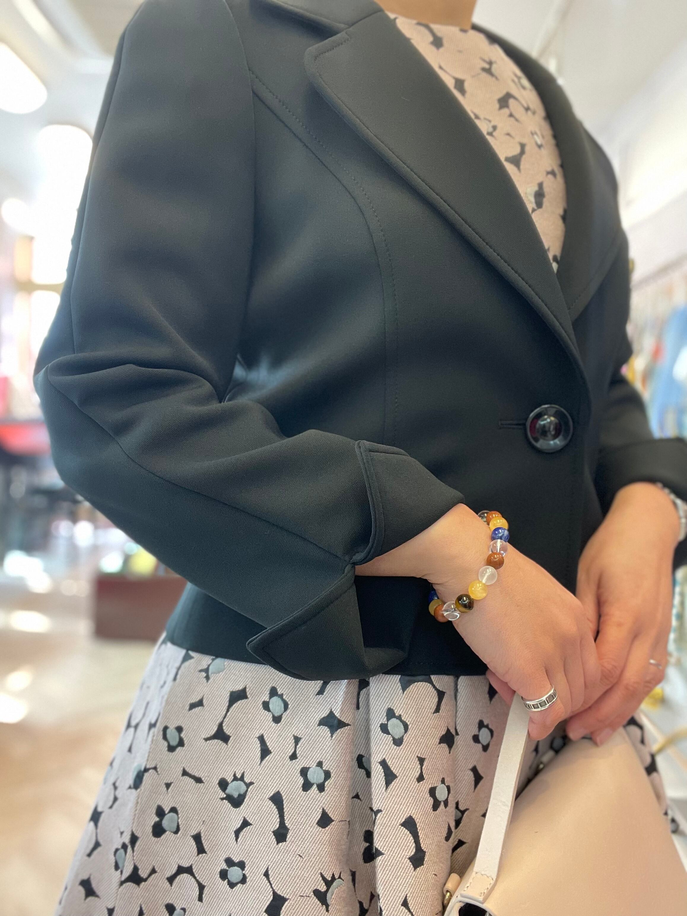 短めの丈がワンピースやスカート、ワイドパンツときれいに合います