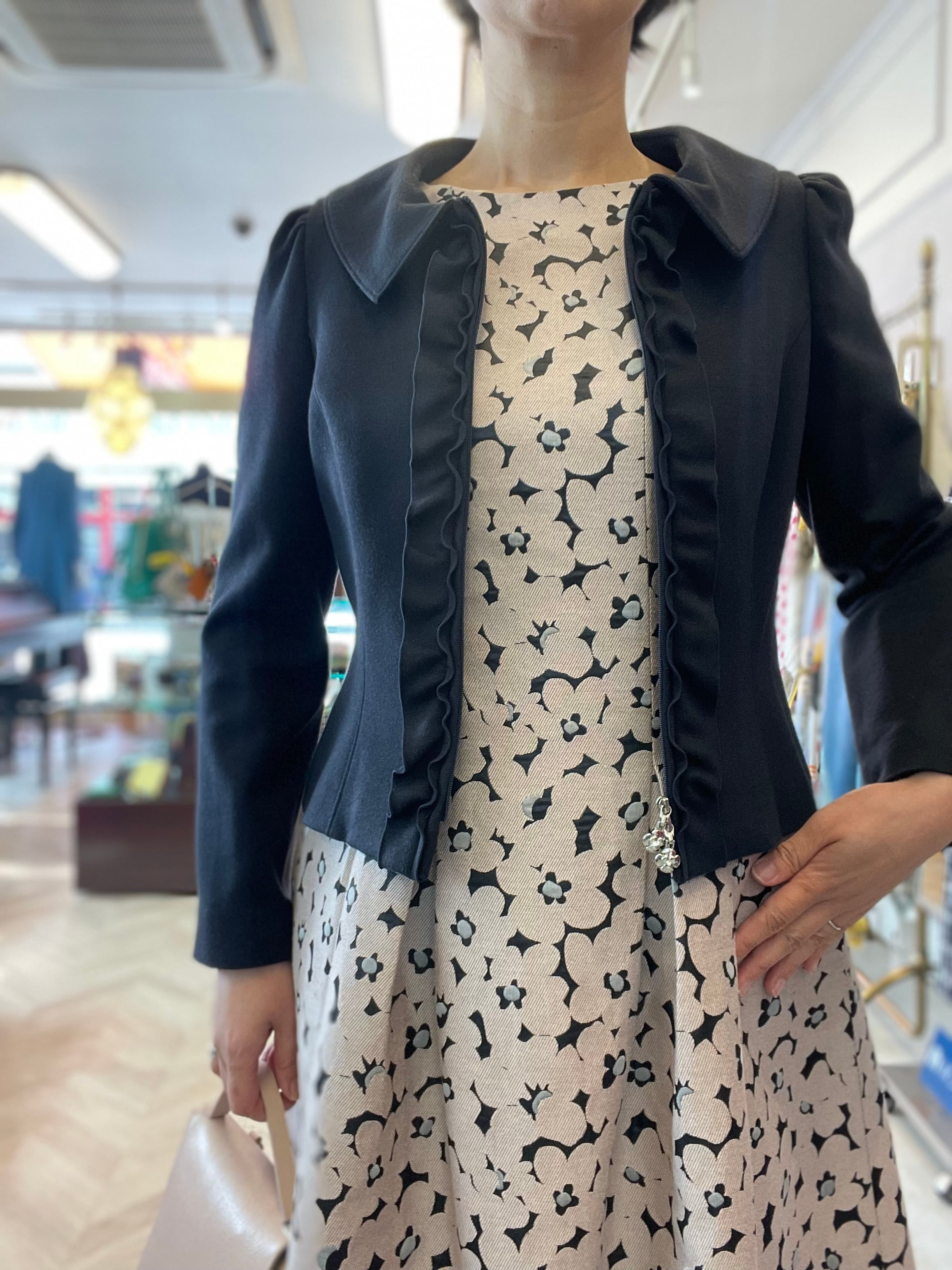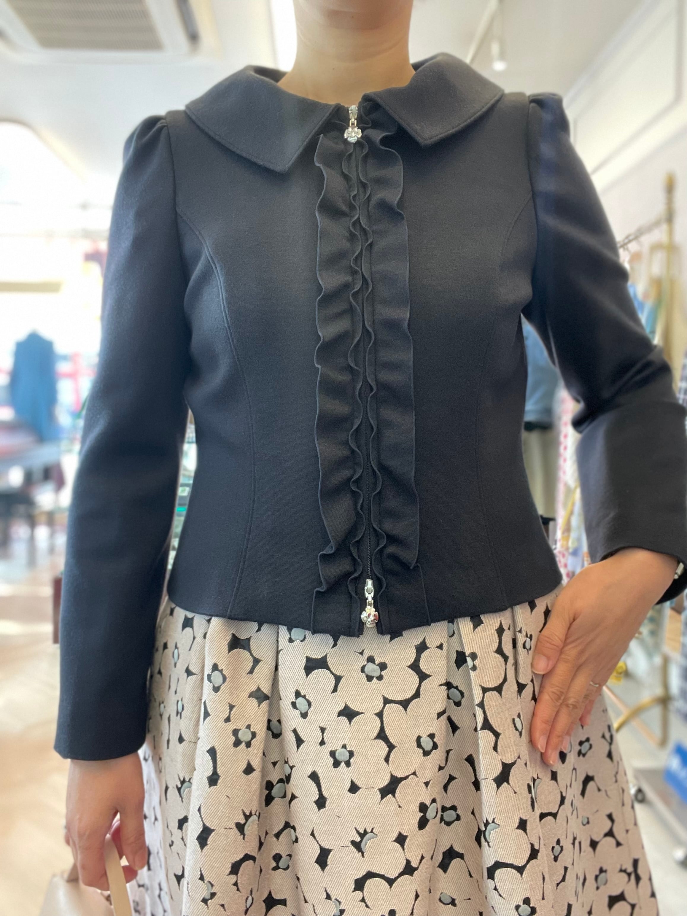 立体的な前フリルがエレガントなショート丈ジャケット
