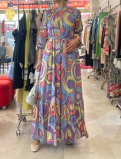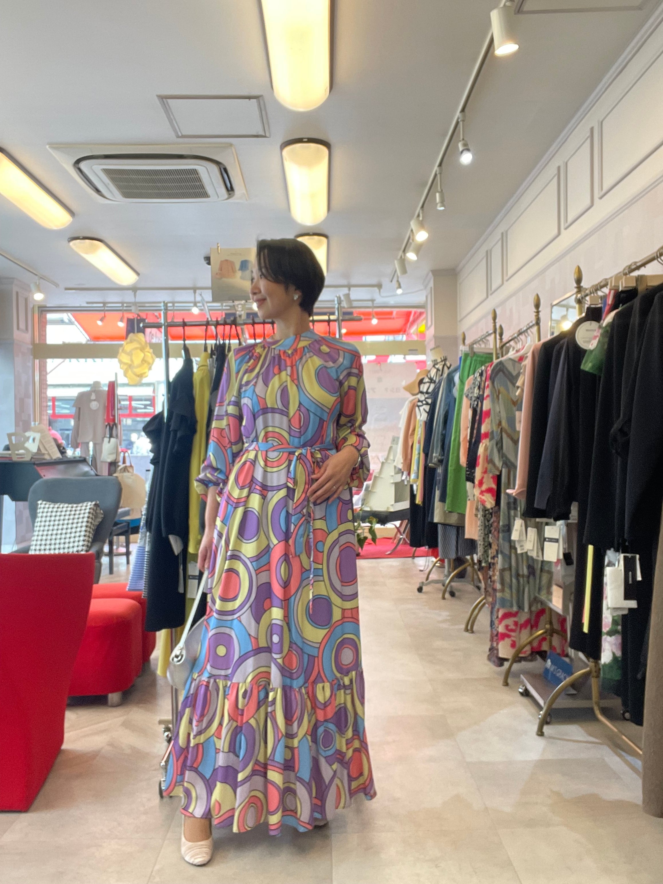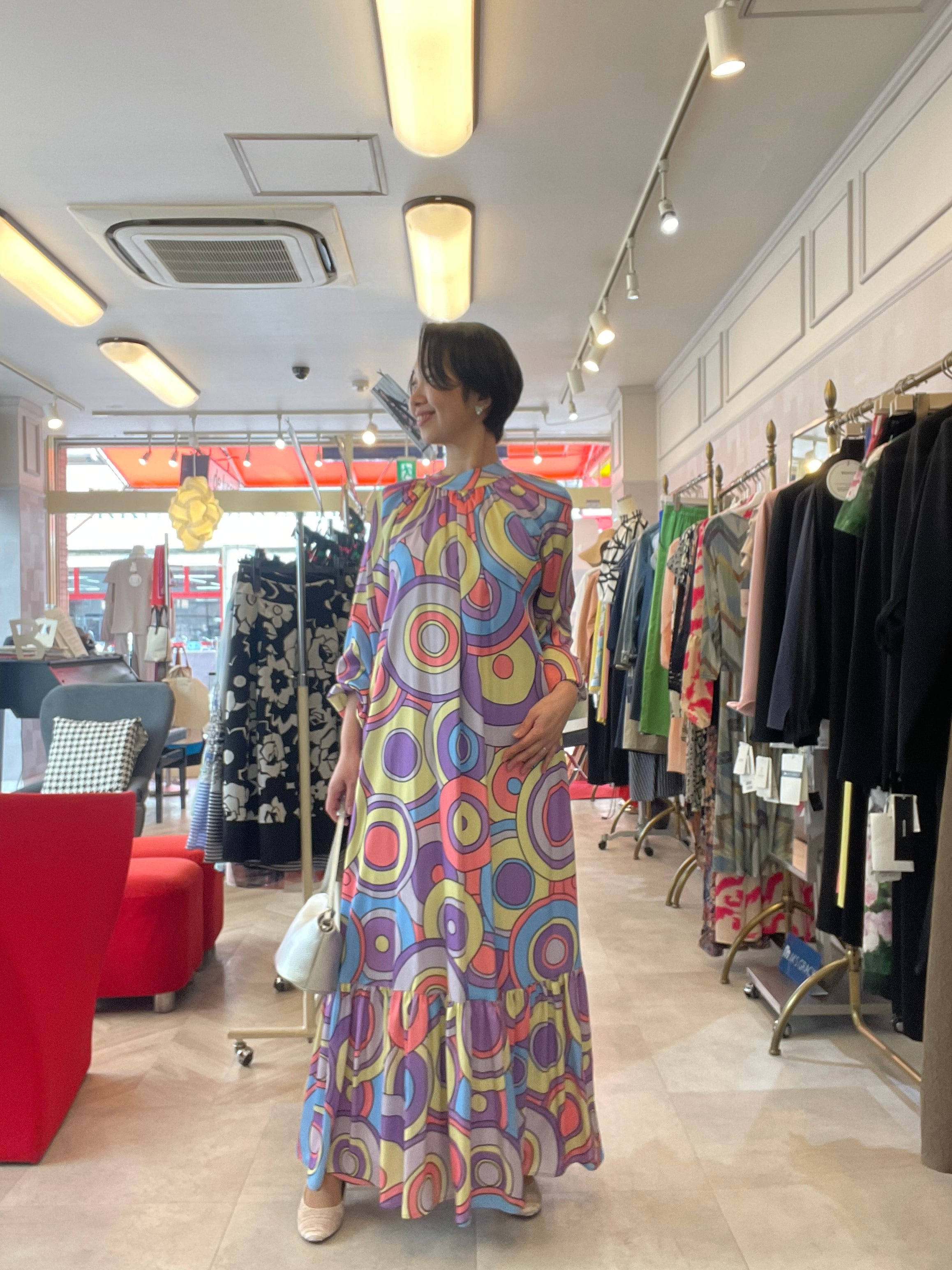 華やかな虹のような柄のイタリア製ワンピース