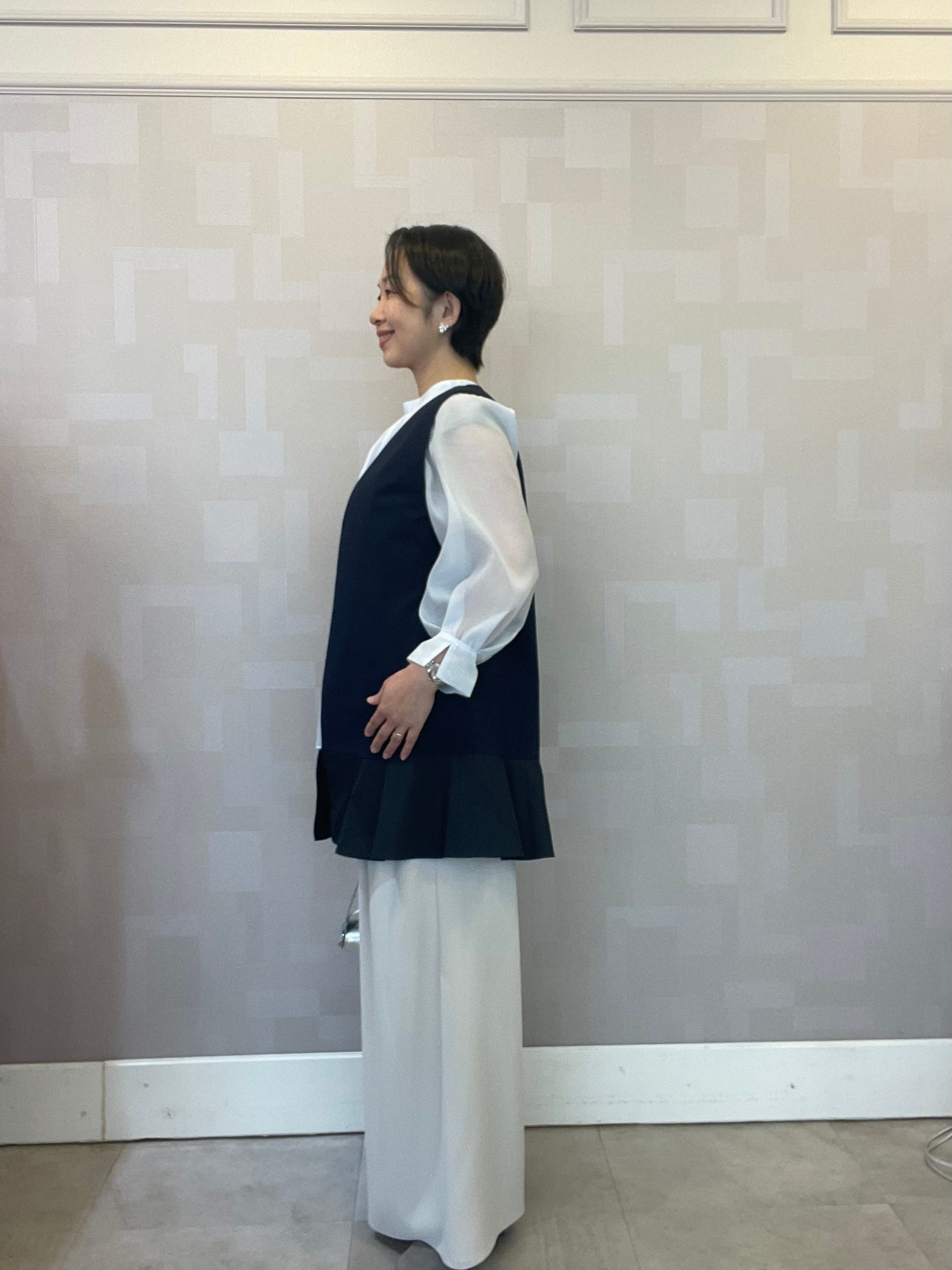裾フリル切り替えジレ ベスト ネイビー 日本製