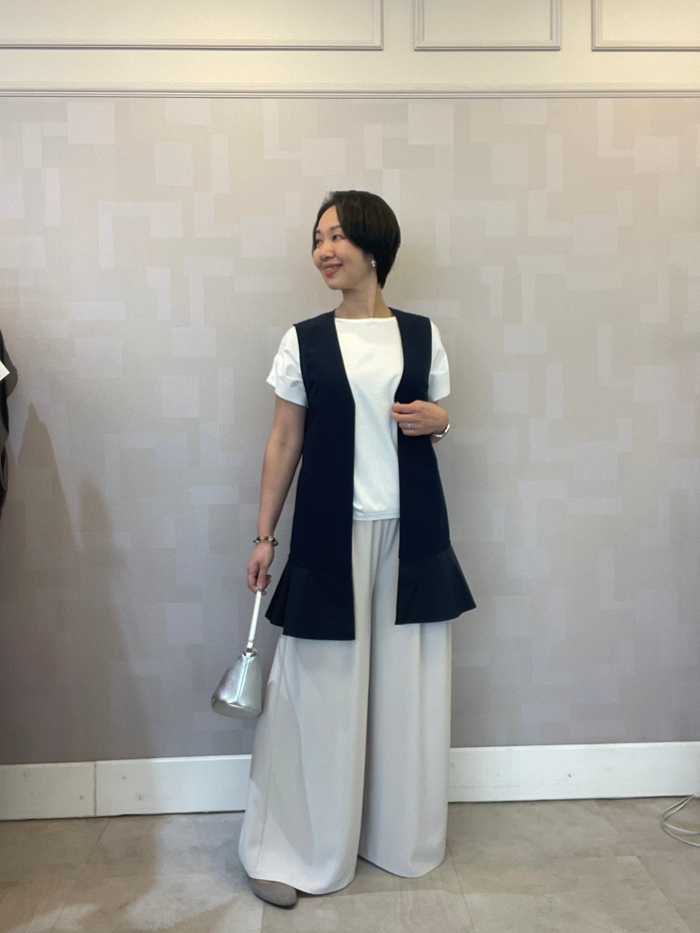 裾フリルの切り替えがエレガントなジレ