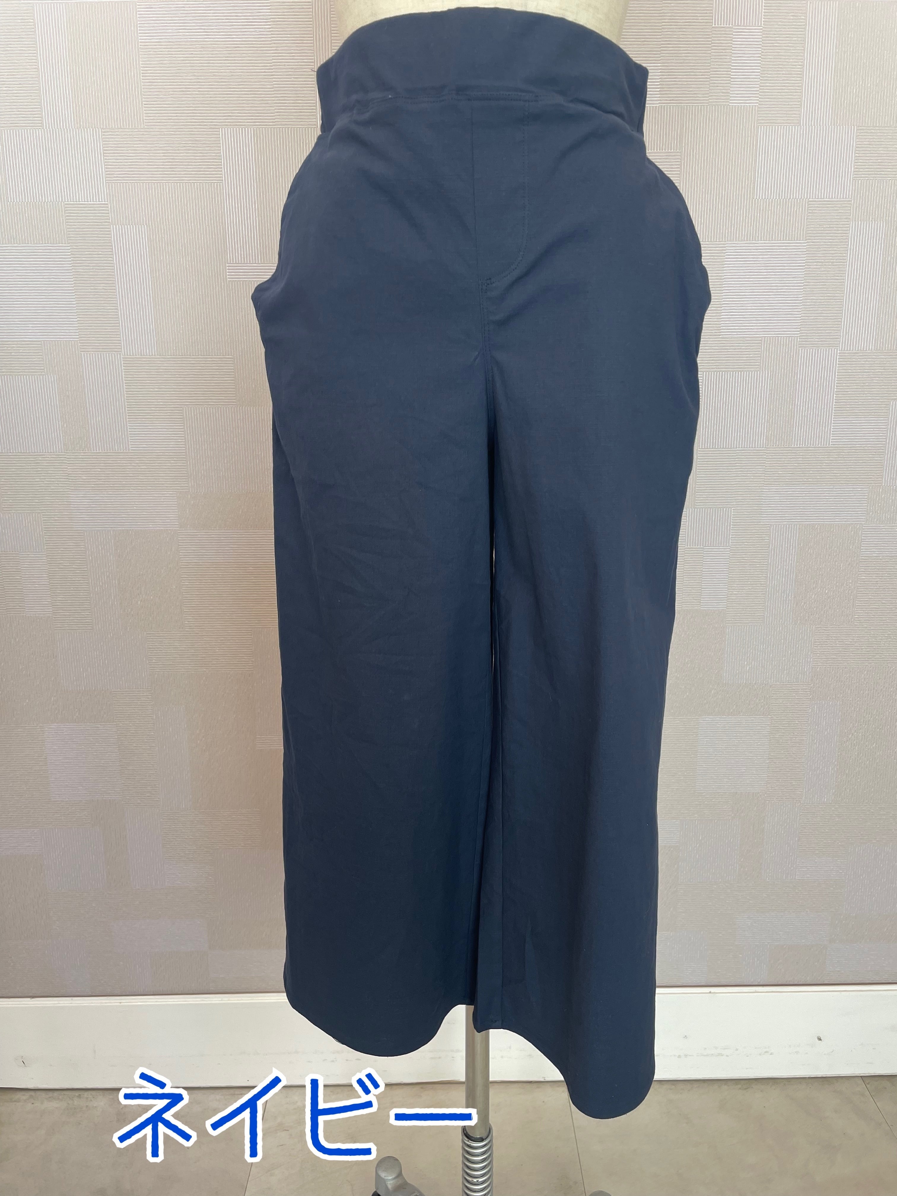 ストレッチ綿素材ガウチョパンツ ネイビー、ブラック、ベージュ きれいめカジュアル
