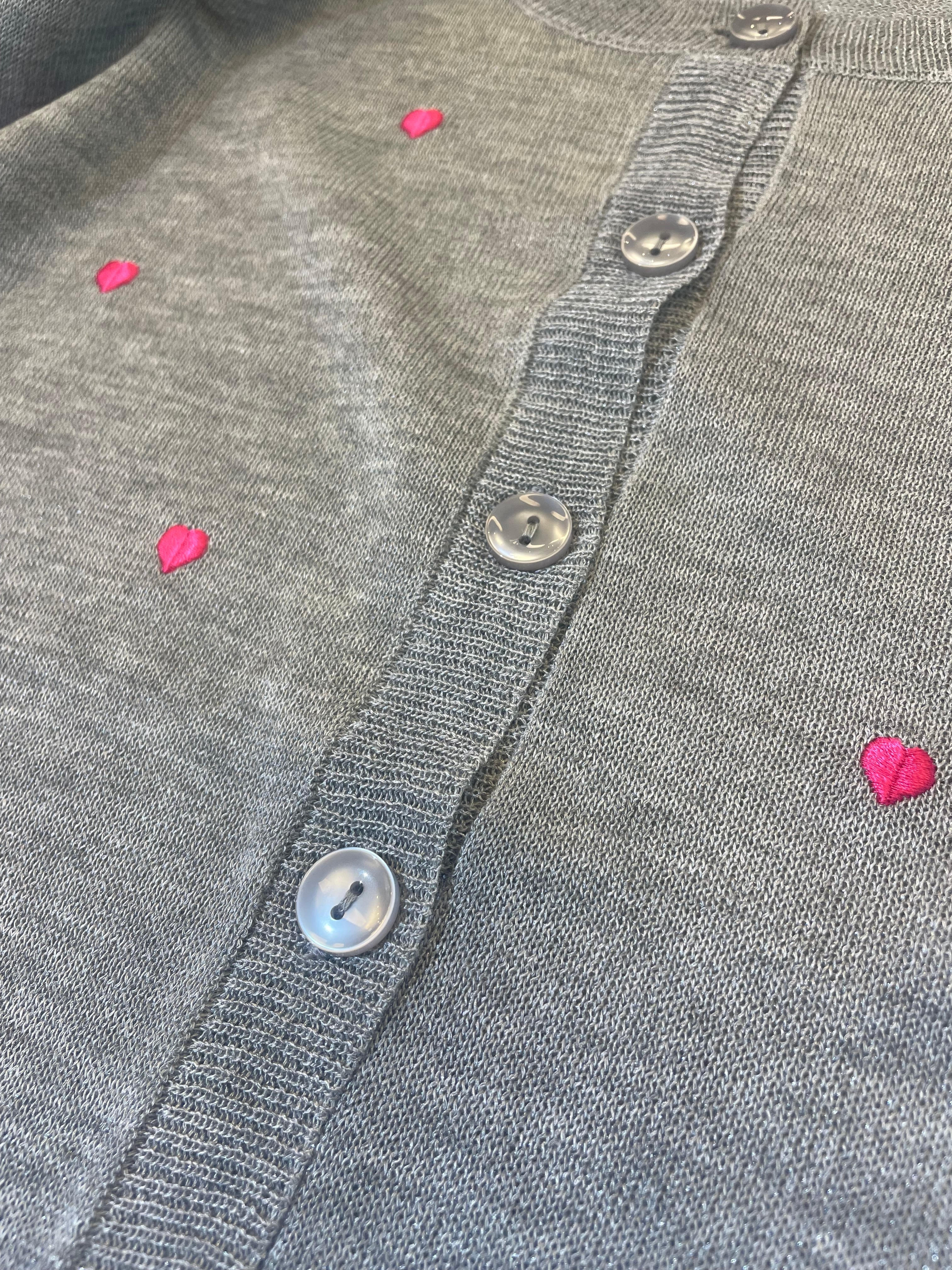 大人可愛いハート刺繍ショートカーディガン|上品に華やぐラメ入りニット グレー、ホワイト