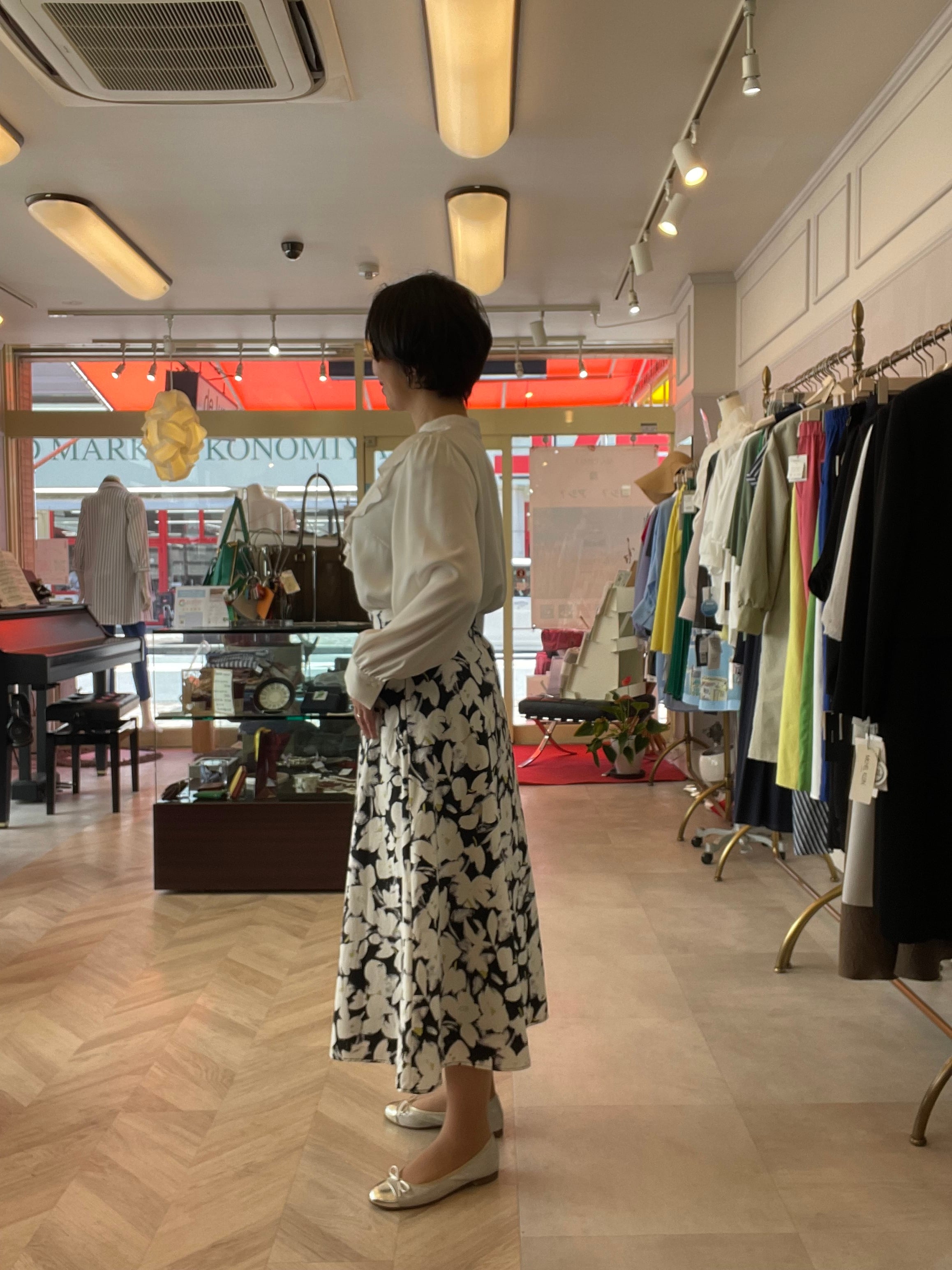 頑張りすぎない華やかさが魅力の花柄スカート