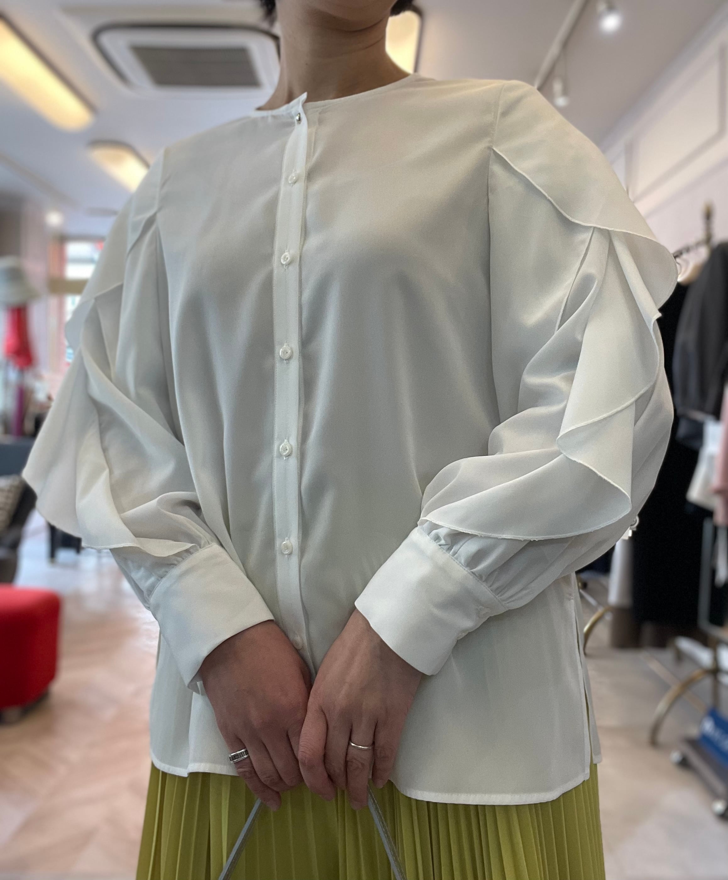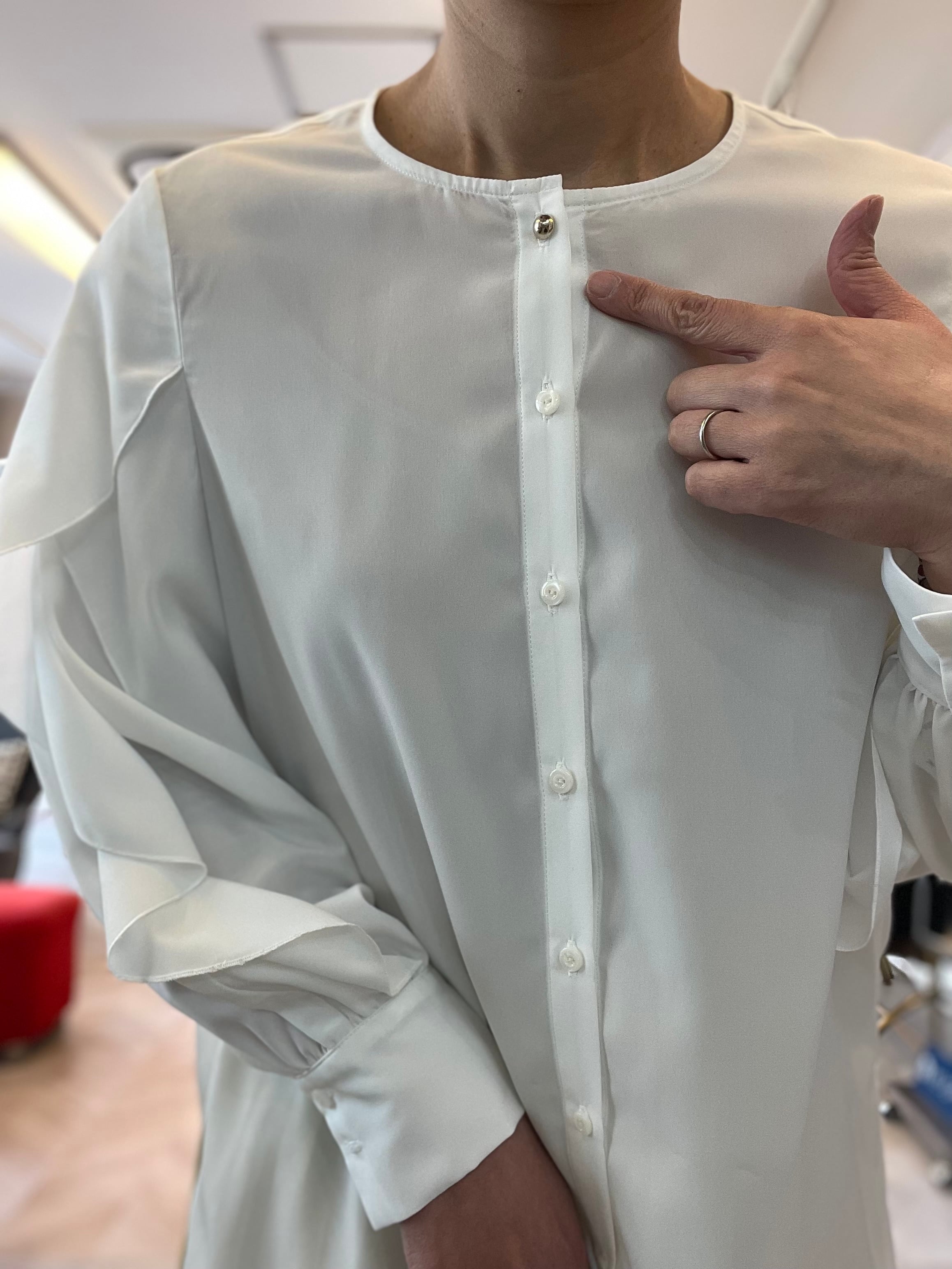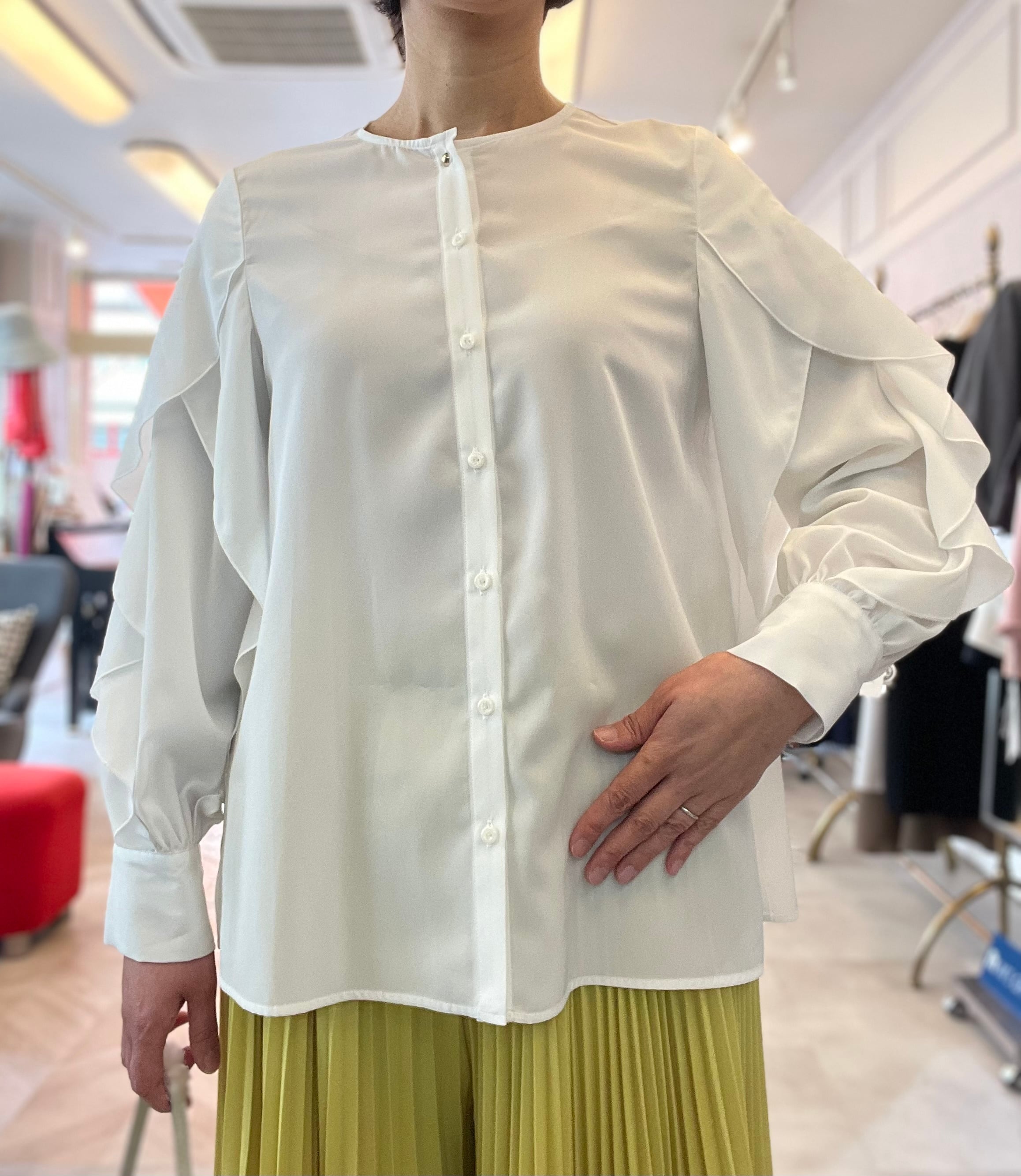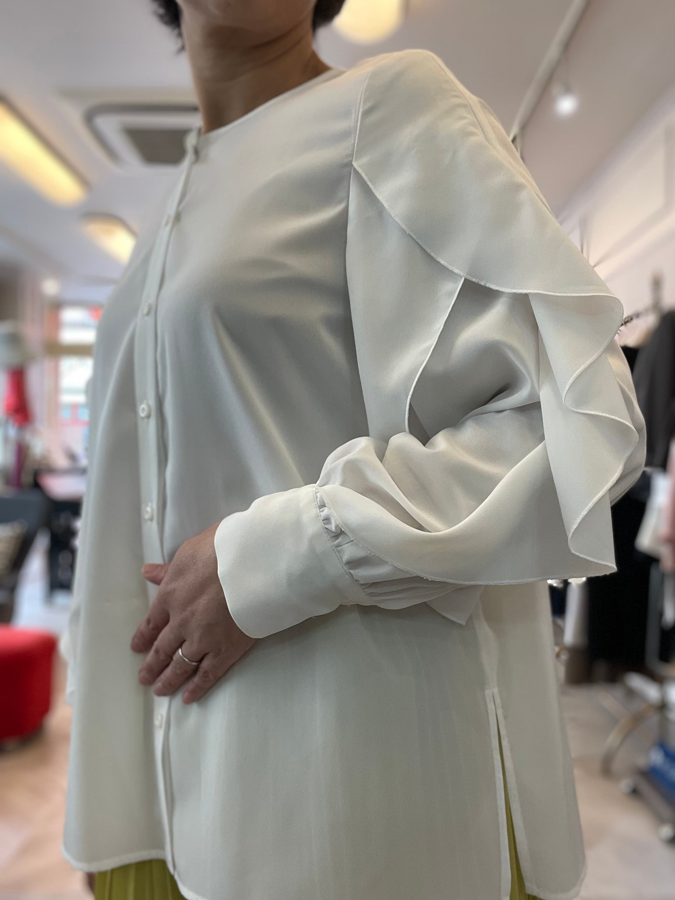 花びらのようなお袖がきれいなブラウス ホワイト 手洗い可能
