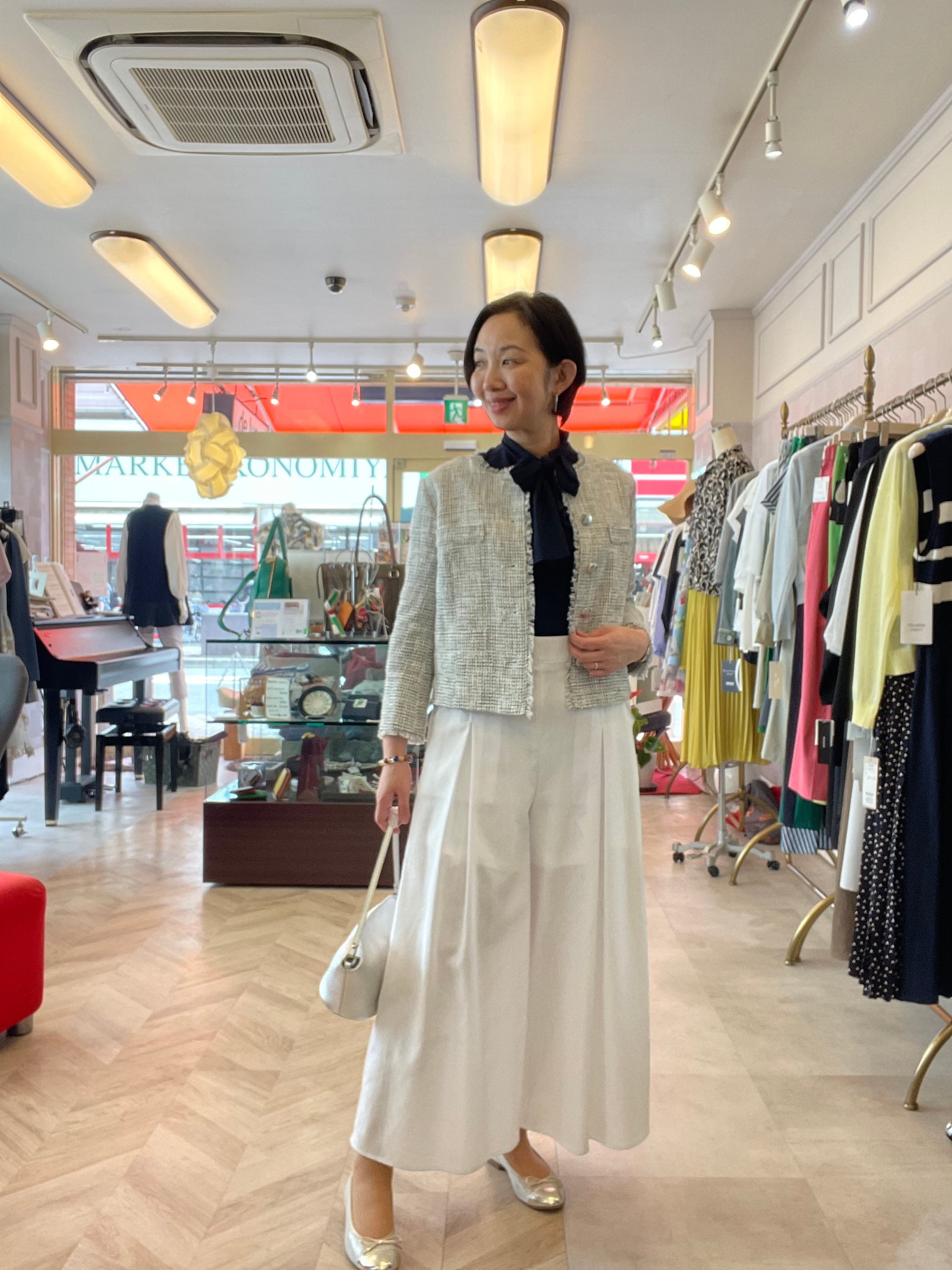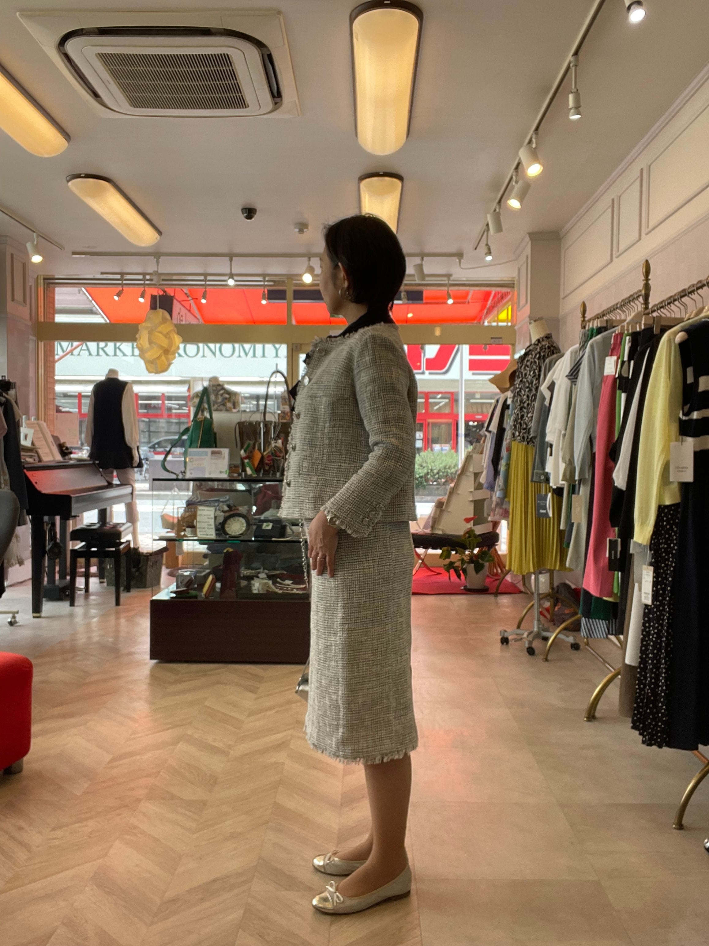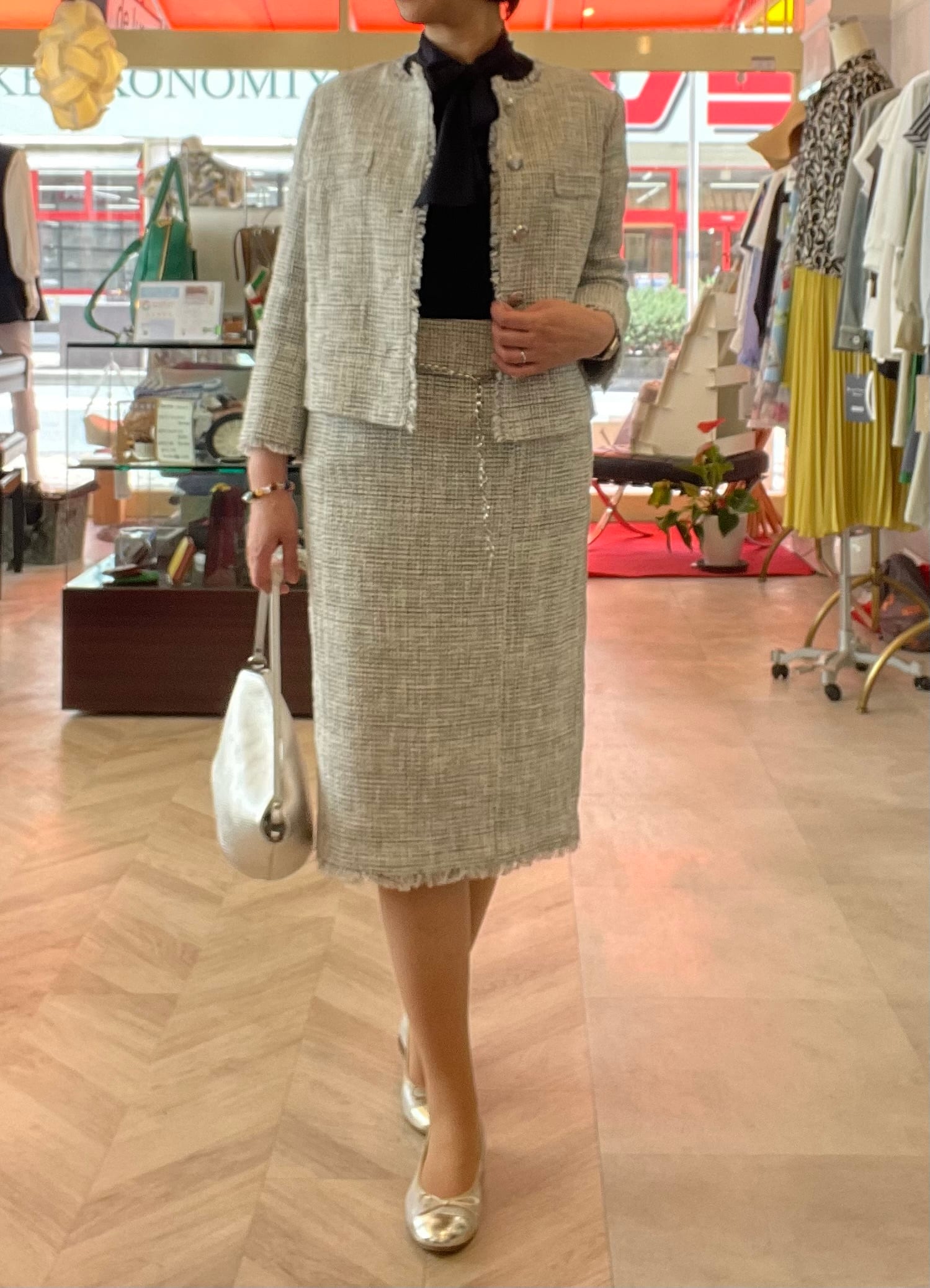 大人の上品セットアップ|サマーツイードスカート×ジャケット きれいめコーデ 式典、お仕事にも