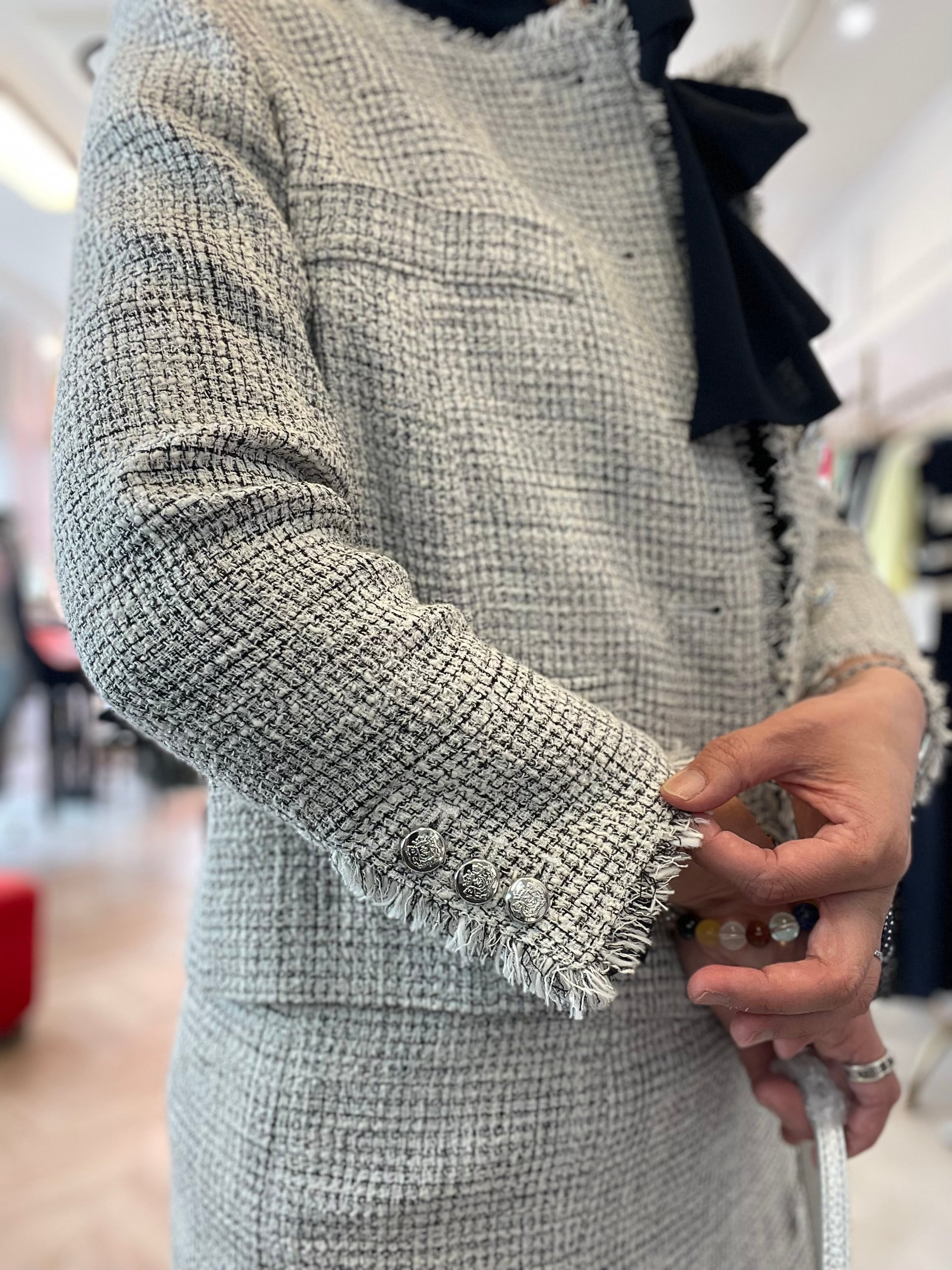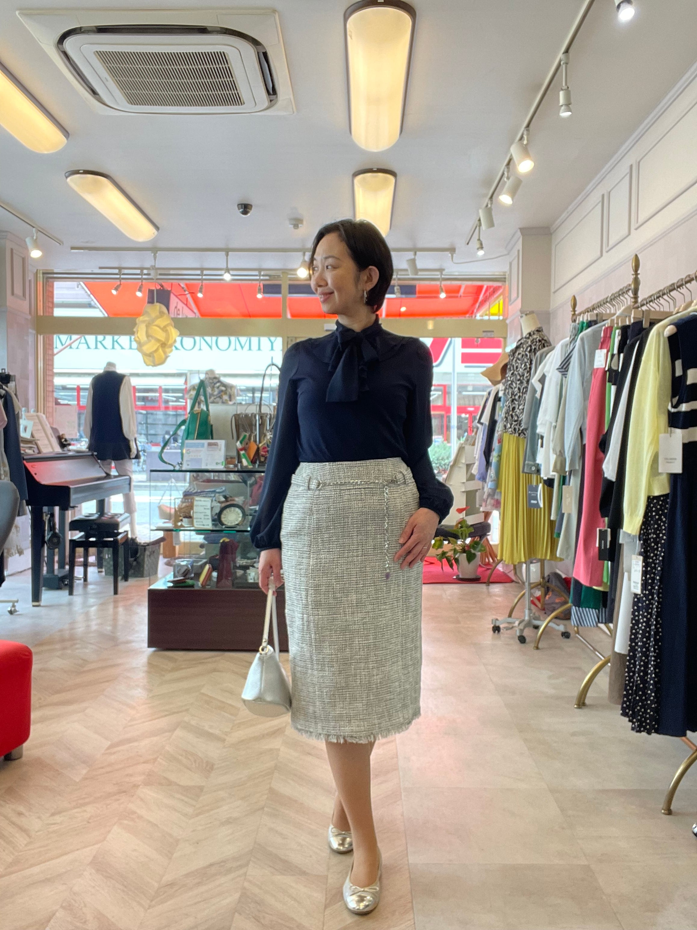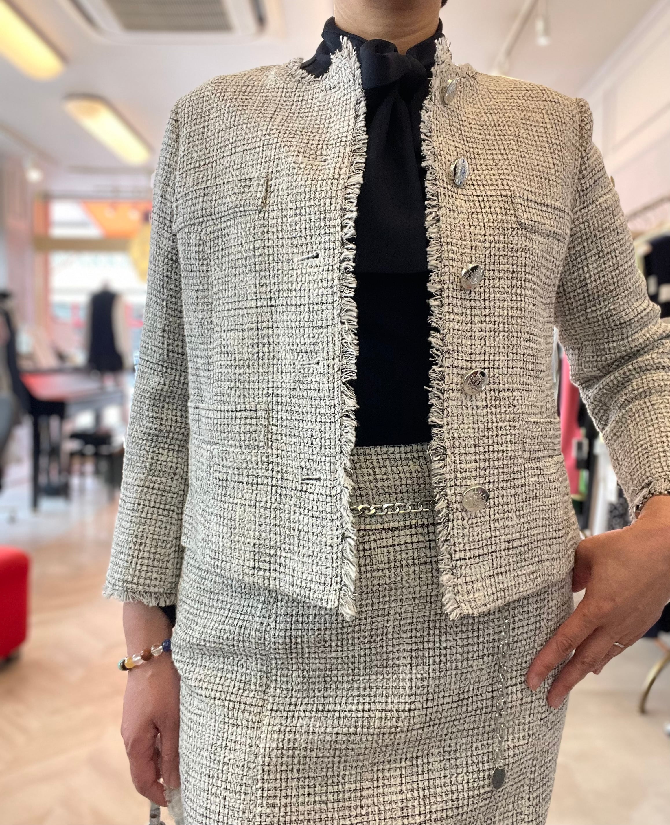 大人の上品セットアップ|サマーツイードスカート×ジャケット きれいめコーデ 式典、お仕事にも