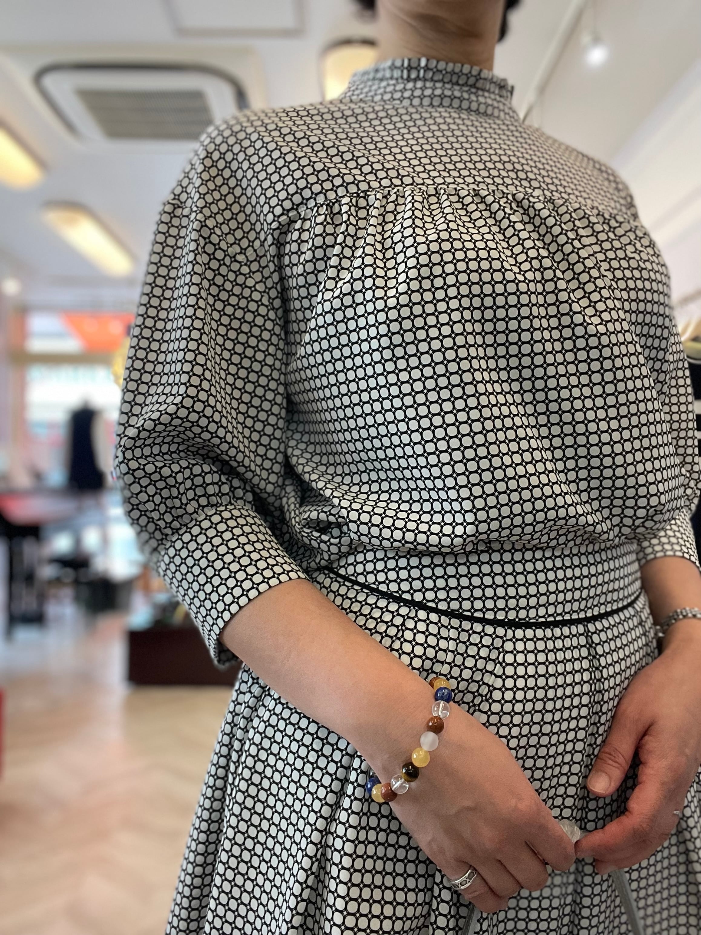 大人の上品セットアップ|モロッカン柄 スカート×ブラウス きれいめコーデ 食事会、お仕事にも