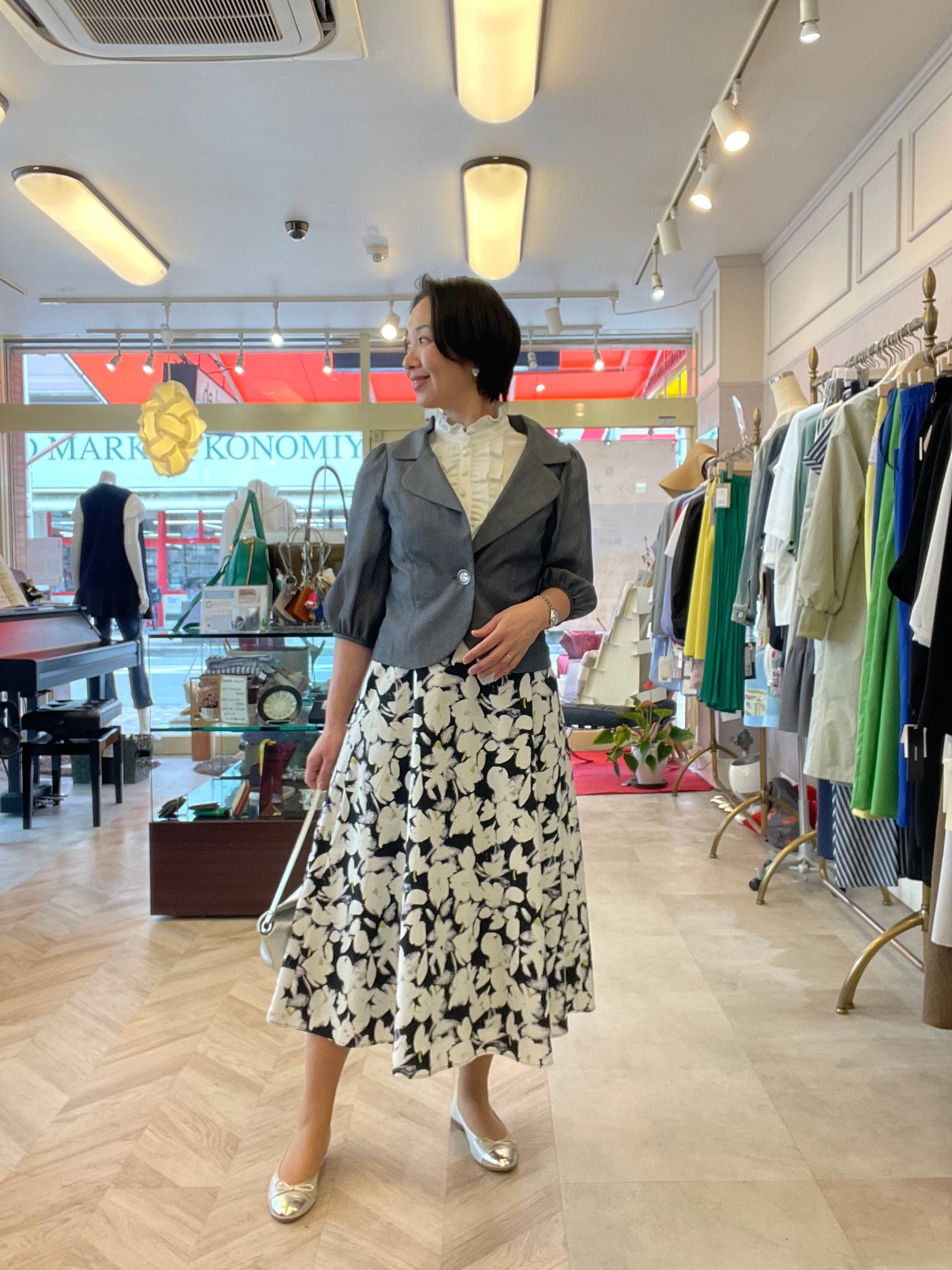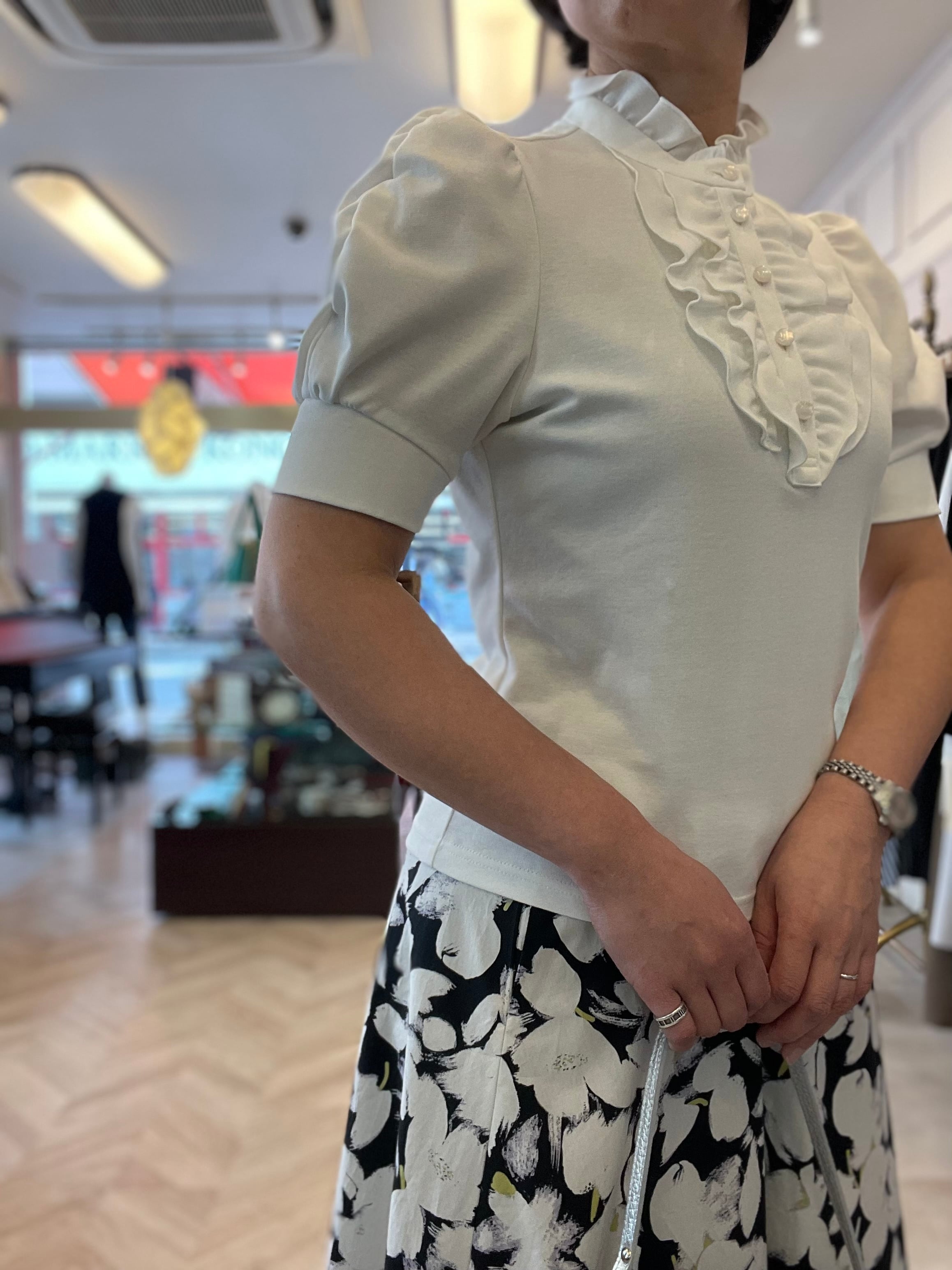 程よいパフスリーブ のフリルカットソー 半袖 ジャケットのインにもOK ホワイト 綿素材 日本製