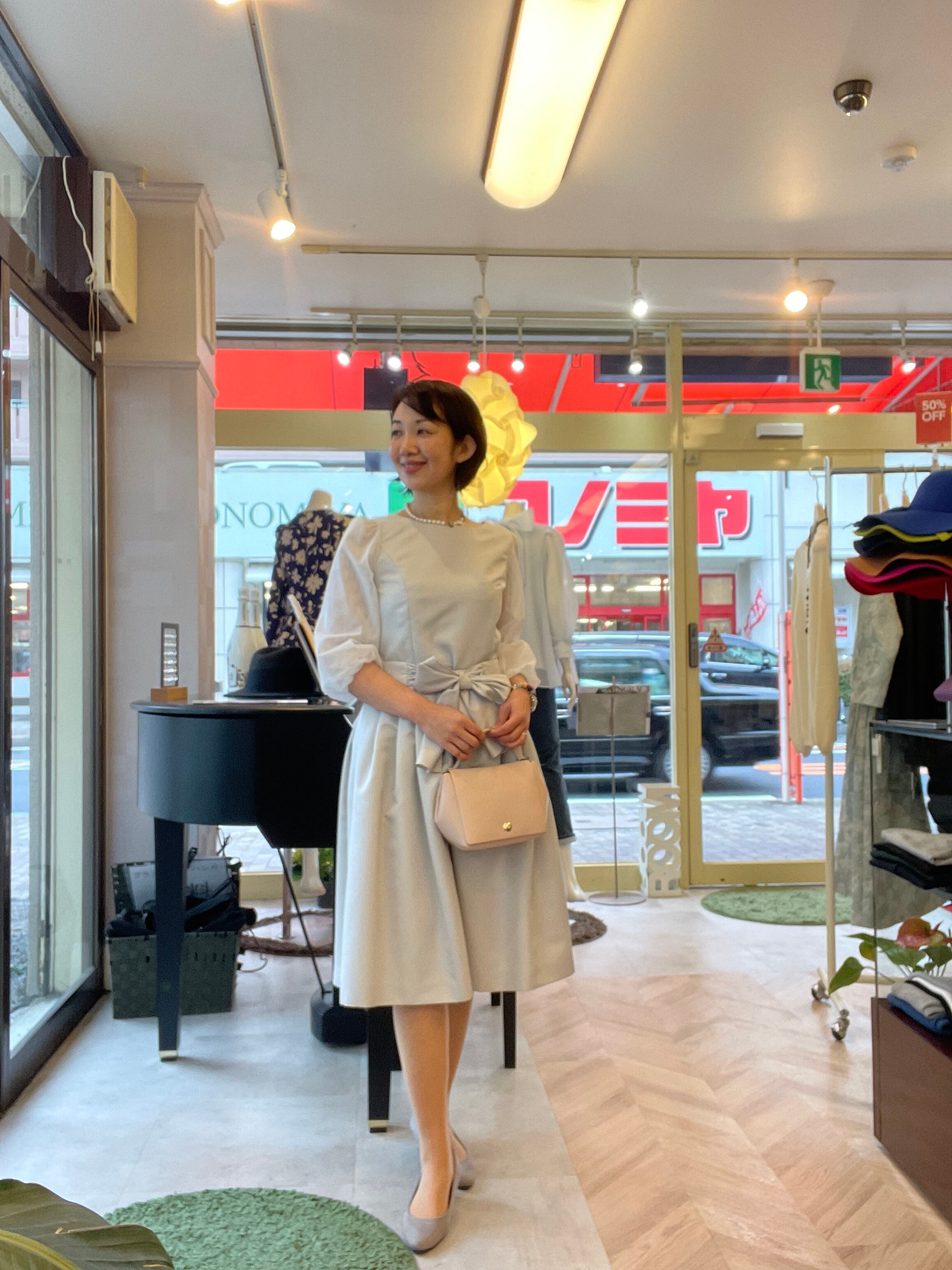 オーガンジー素材、透け感のある袖が華やかワンピース。