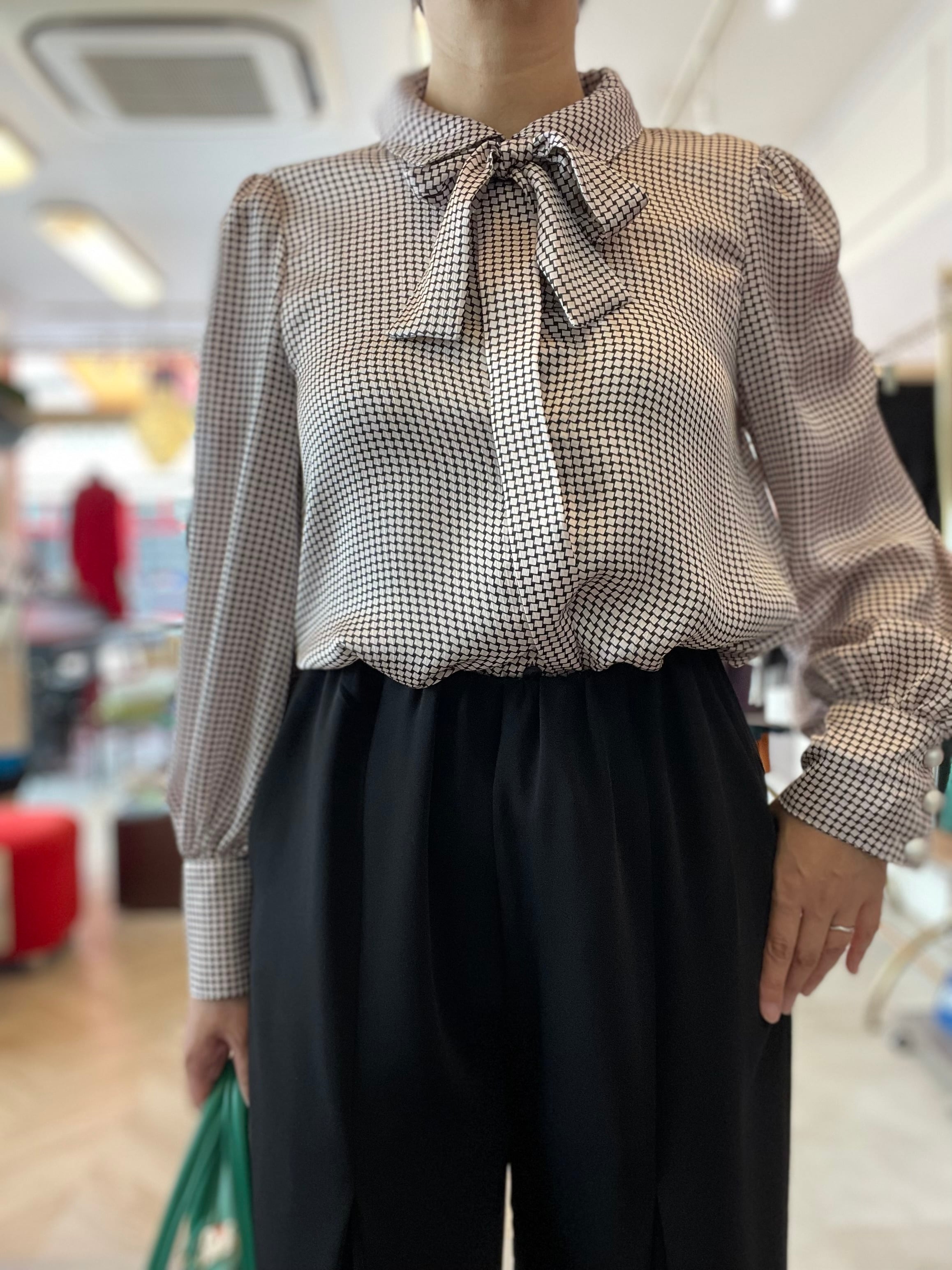 【お仕事にもお出かけにも上品リボン 柄ブラウス】