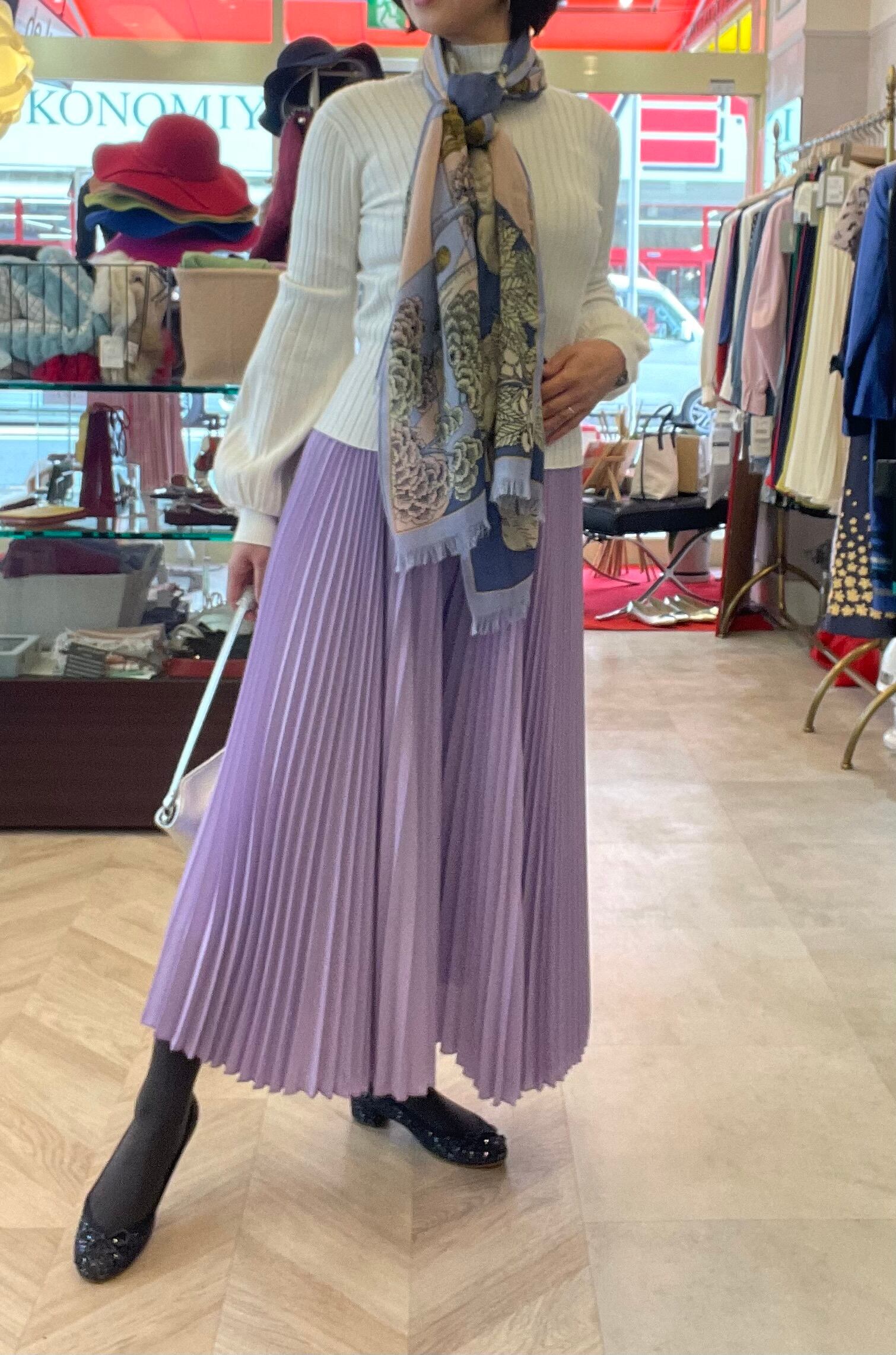 お仕事に、お出かけに、大活躍のプリーツパンツです
