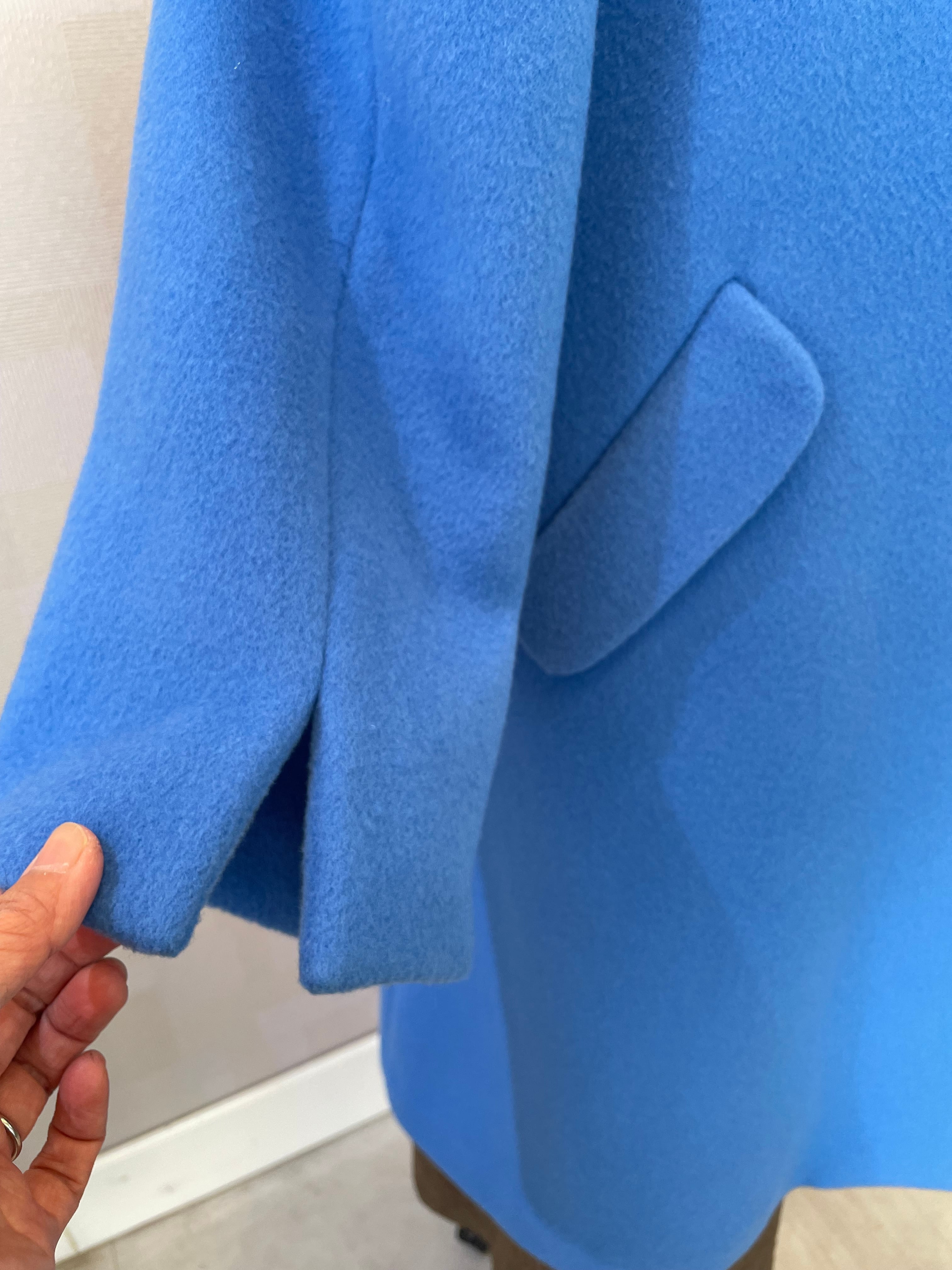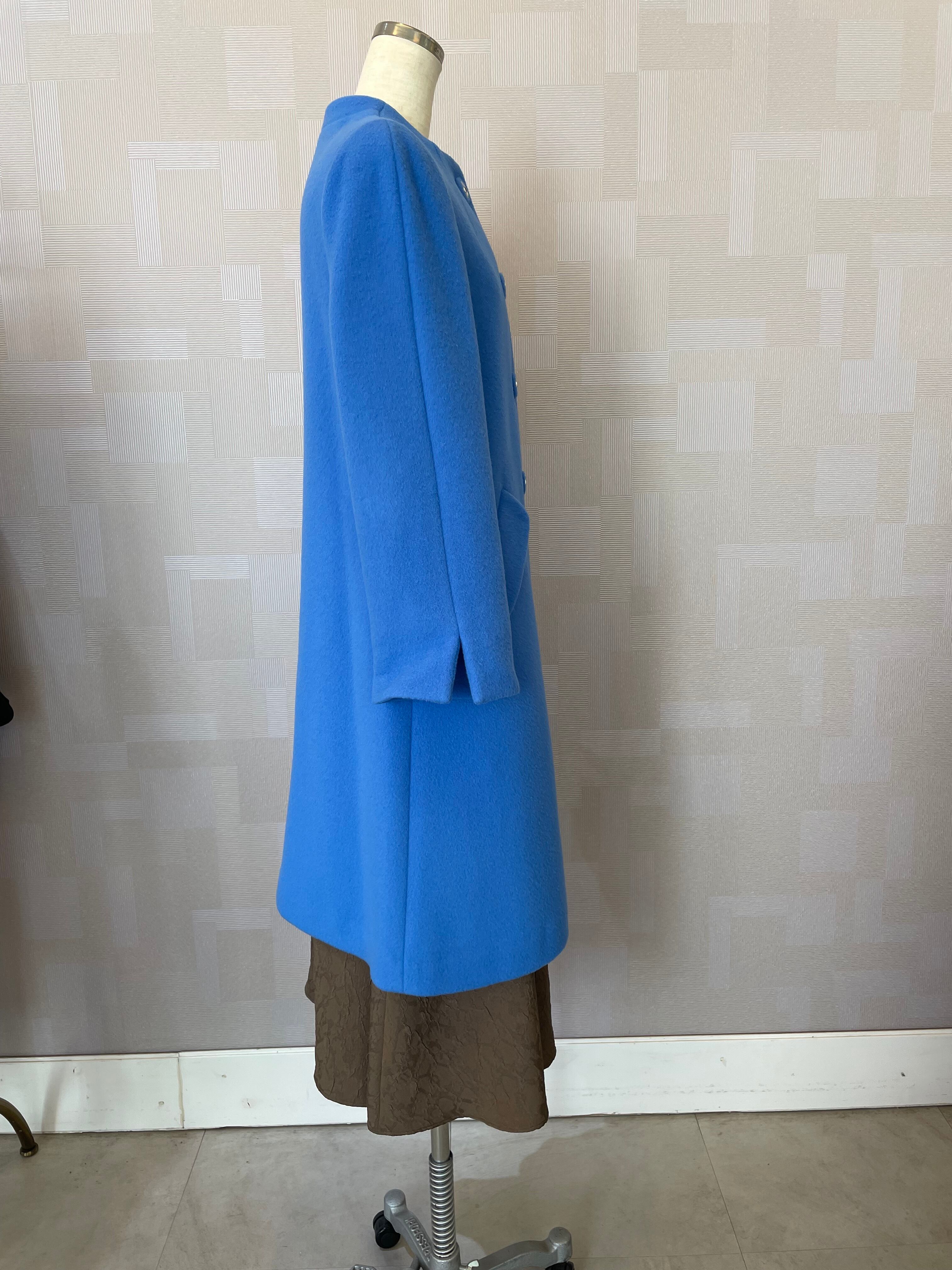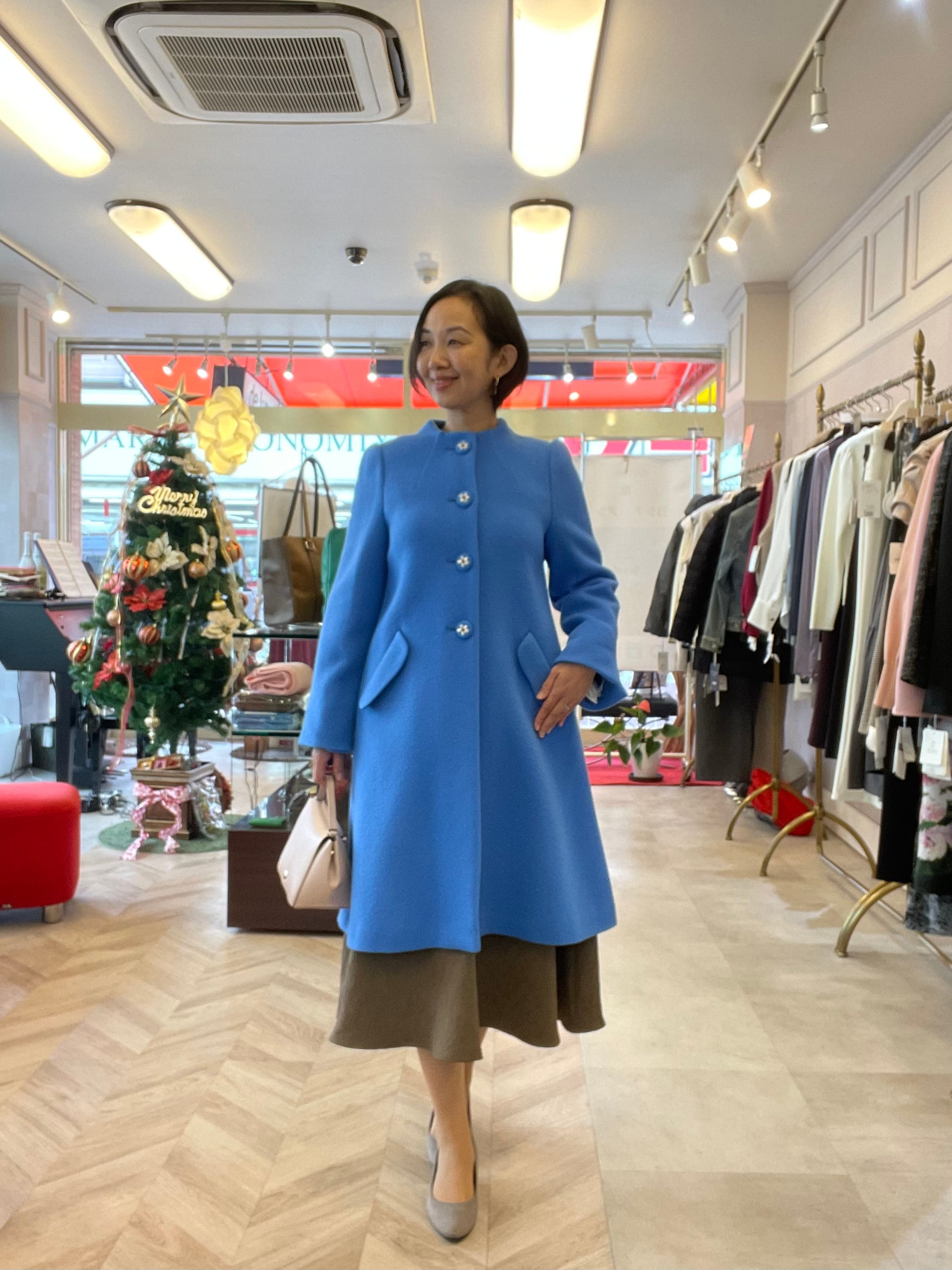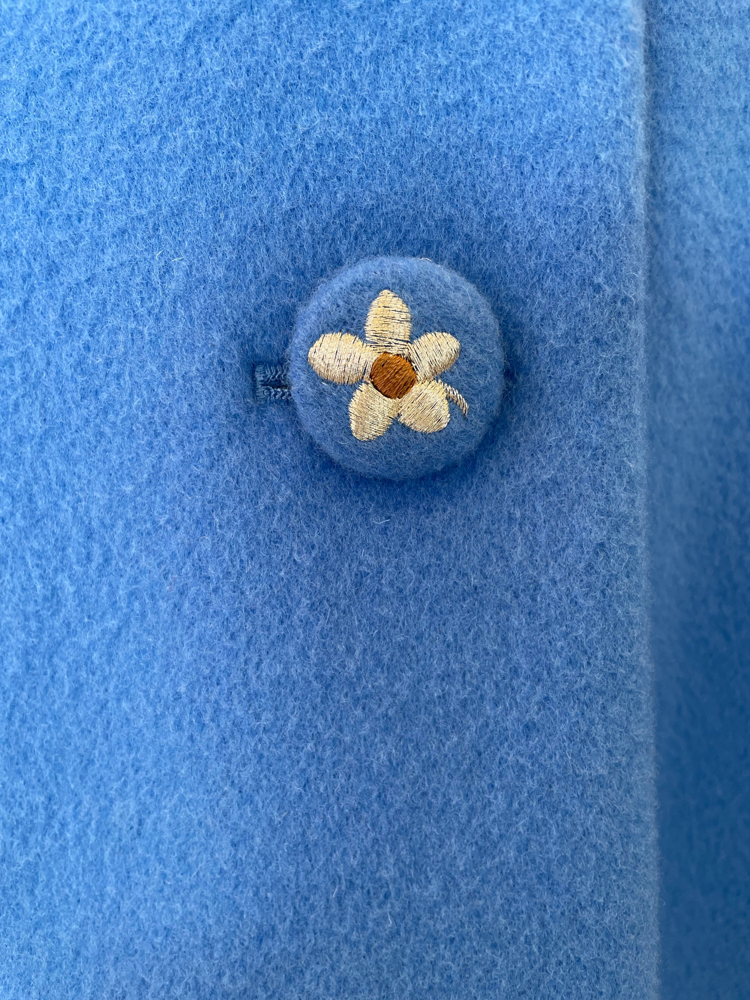 花刺繍ボタン ワンピースコート ウール素材 ブルー