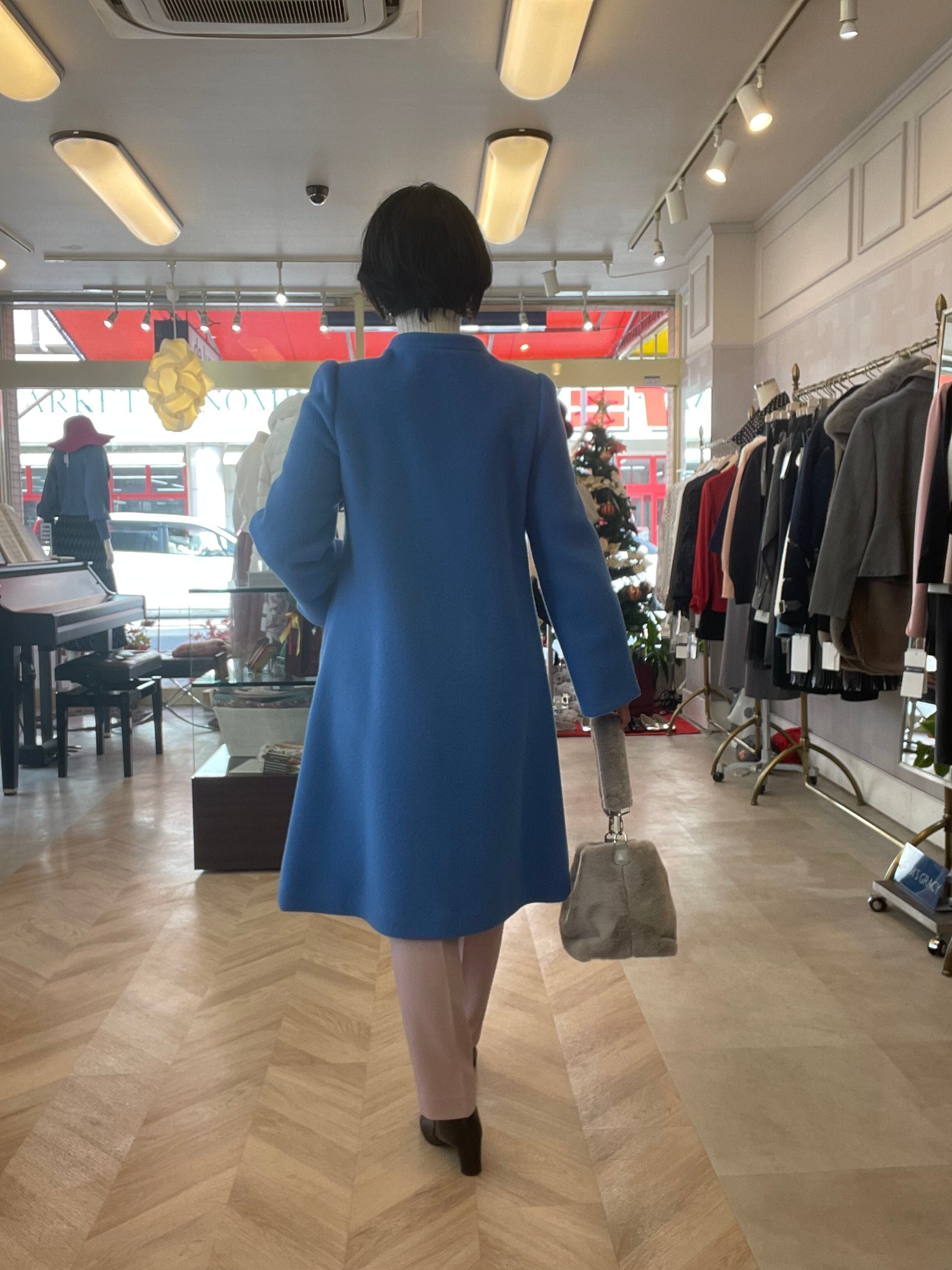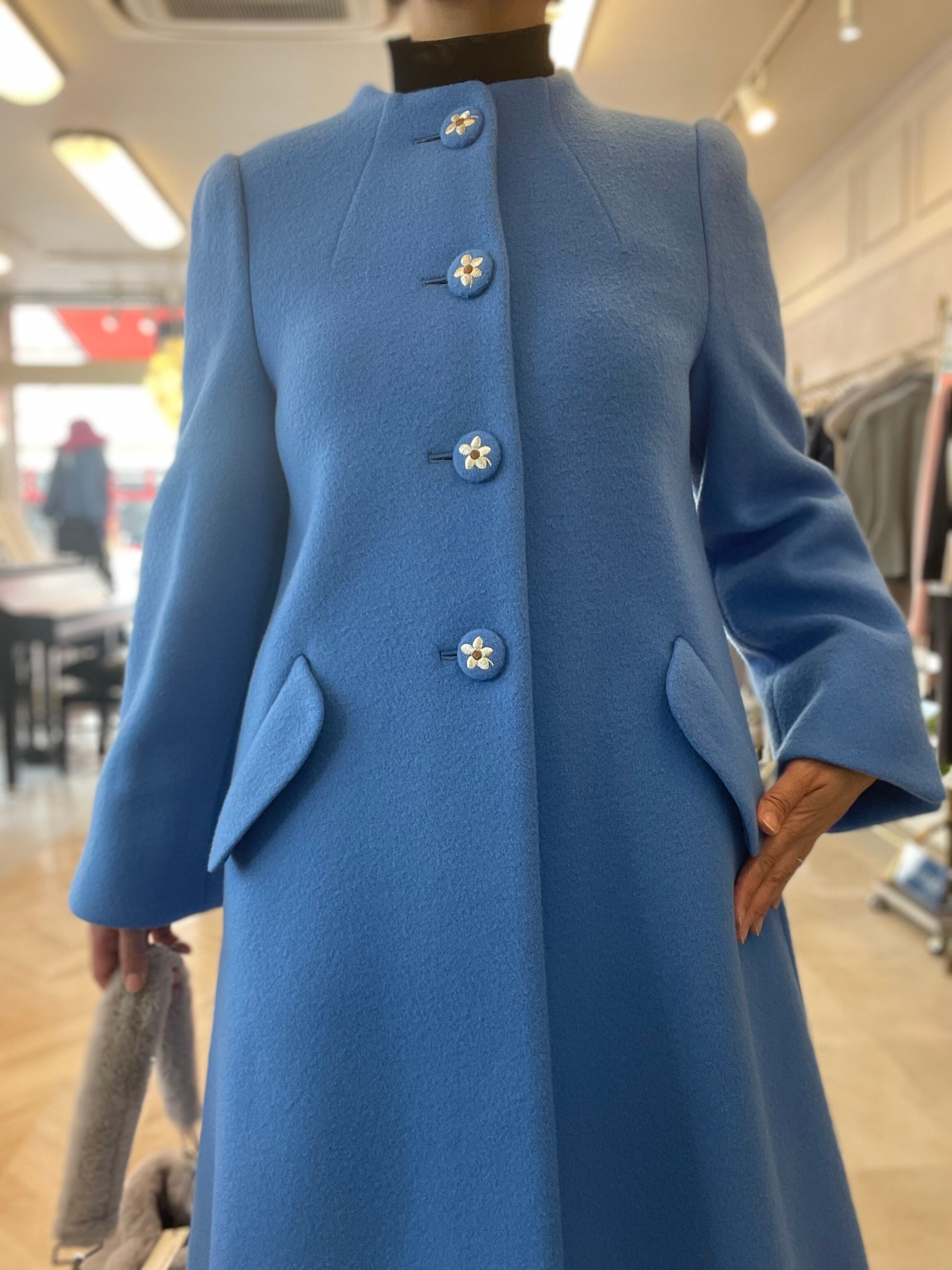 ボタン刺繍 ワンピースみたいなコート ブルー